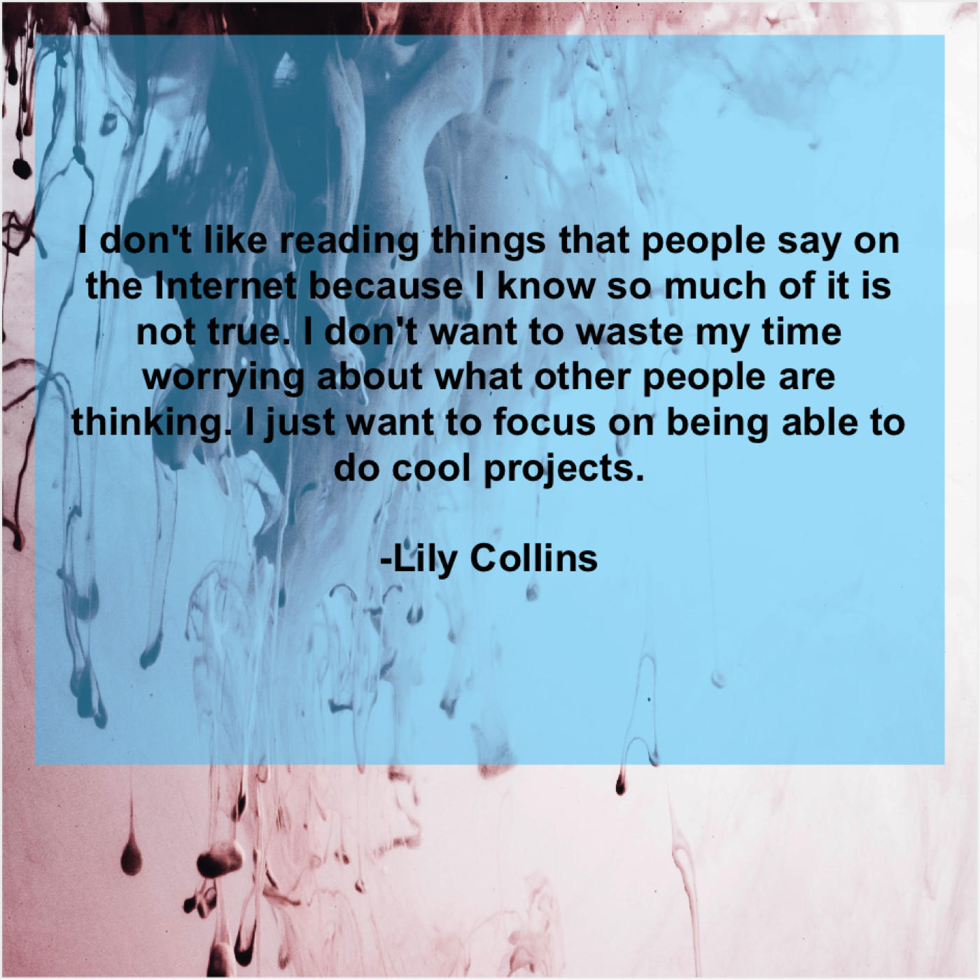 “I don’t like reading things that people say on the Internet because I know so much of it is not true. I don’t want to waste my time worrying about what other people are thinking. I just want to focus on being able to do cool projects.”