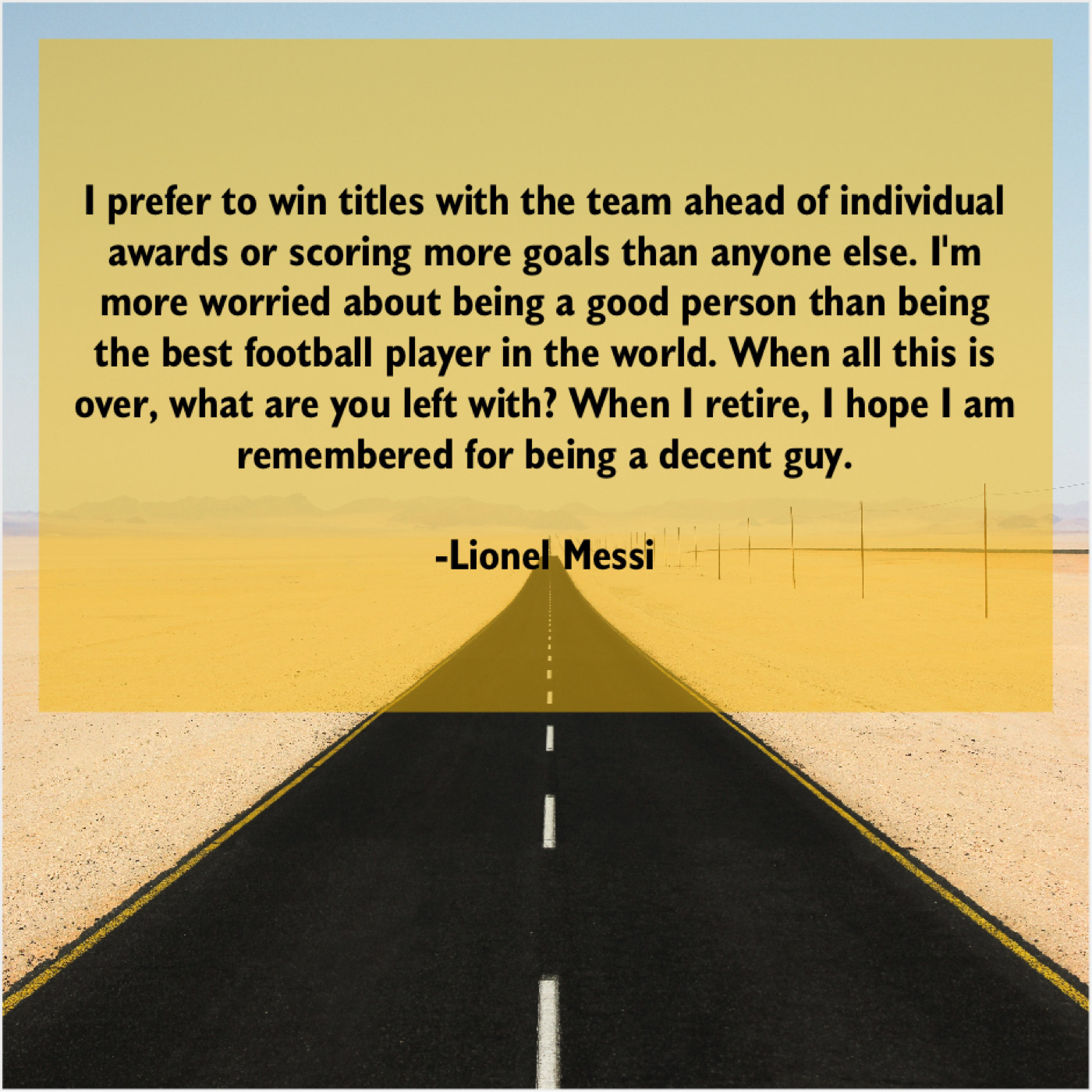 “I prefer to win titles with the team ahead of individual awards or scoring more goals than anyone else. I’m more worried about being a good person than being the best football player in the world. When all this is over, what are you left with? When I retire, I hope I am remembered for being a decent guy.”