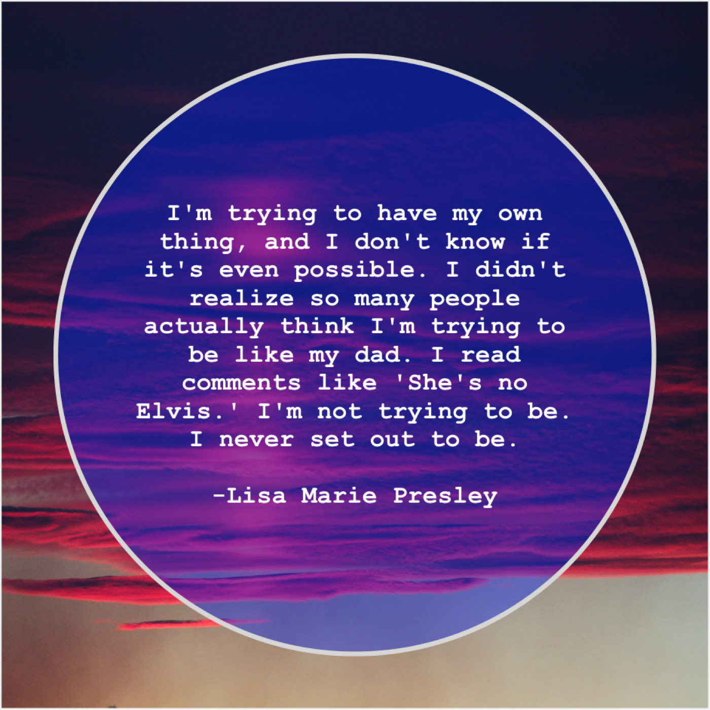 “I’m trying to have my own thing, and I don’t know if it’s even possible. I didn’t realize so many people actually think I’m trying to be like my dad. I read comments like ‘She’s no Elvis.’ I’m not trying to be. I never set out to be.”