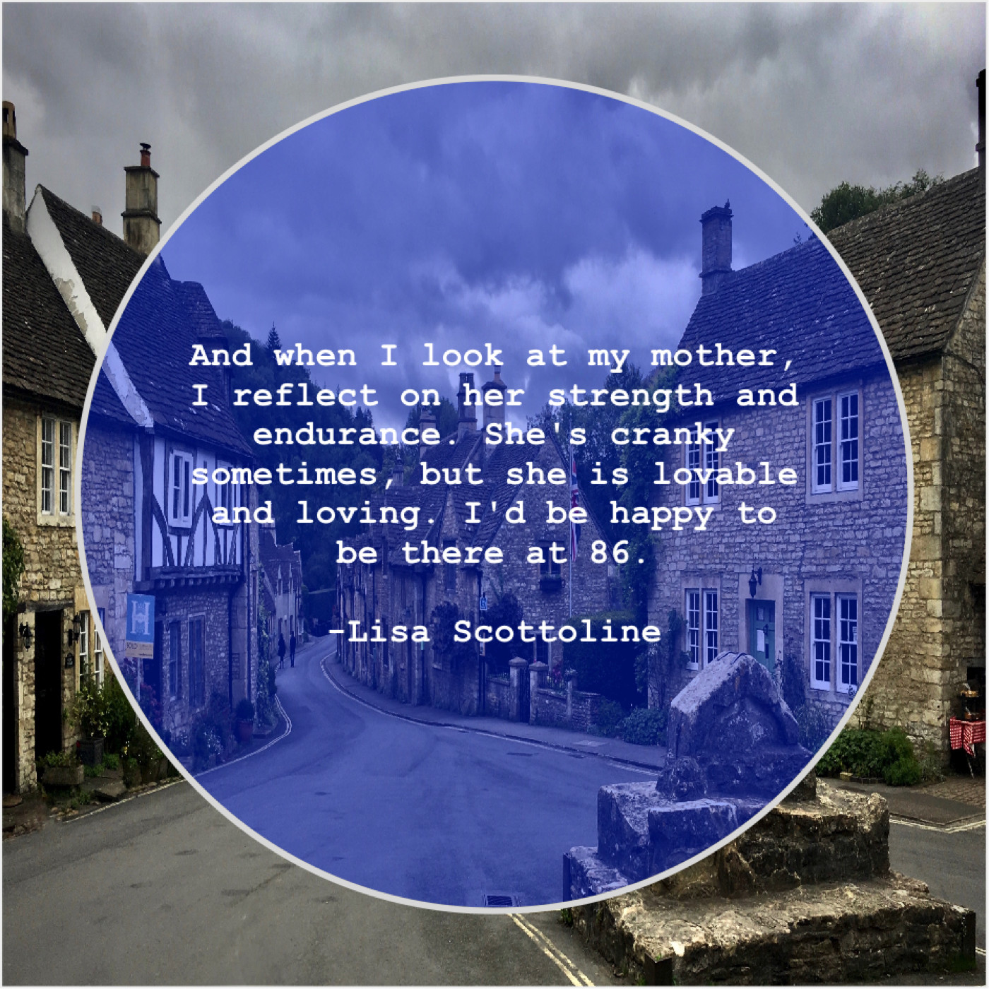Lisa Scottoline Lisa Scottoline – And when I look at… September 30, 2019 admin “And when I look at my mother, I reflect on her strength and endurance. She’s cranky sometimes, but she is lovable and loving. I’d be happy to be there at 86.”-Lisa Scottoline