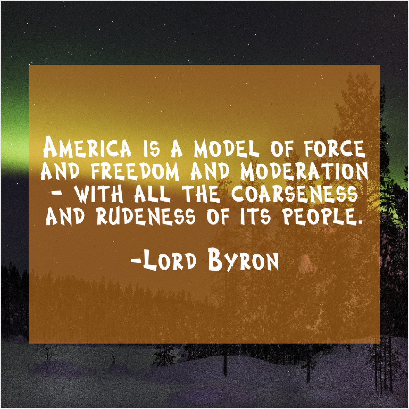 Lord Byron Lord Byron – America is a model of… August 5, 2019 admin “America is a model of force and freedom and moderation – with all the coarseness and rudeness of its people.”-Lord Byron