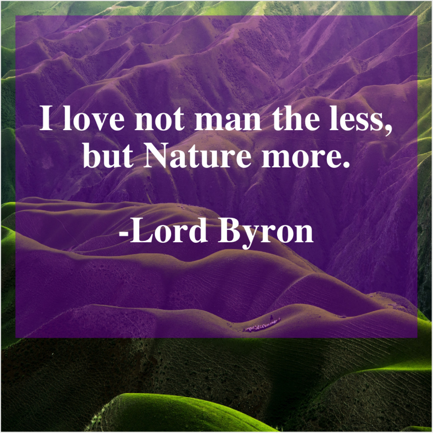 Lord Byron Lord Byron – I love not man the… October 1, 2019 admin “I love not man the less, but Nature more.”-Lord Byron