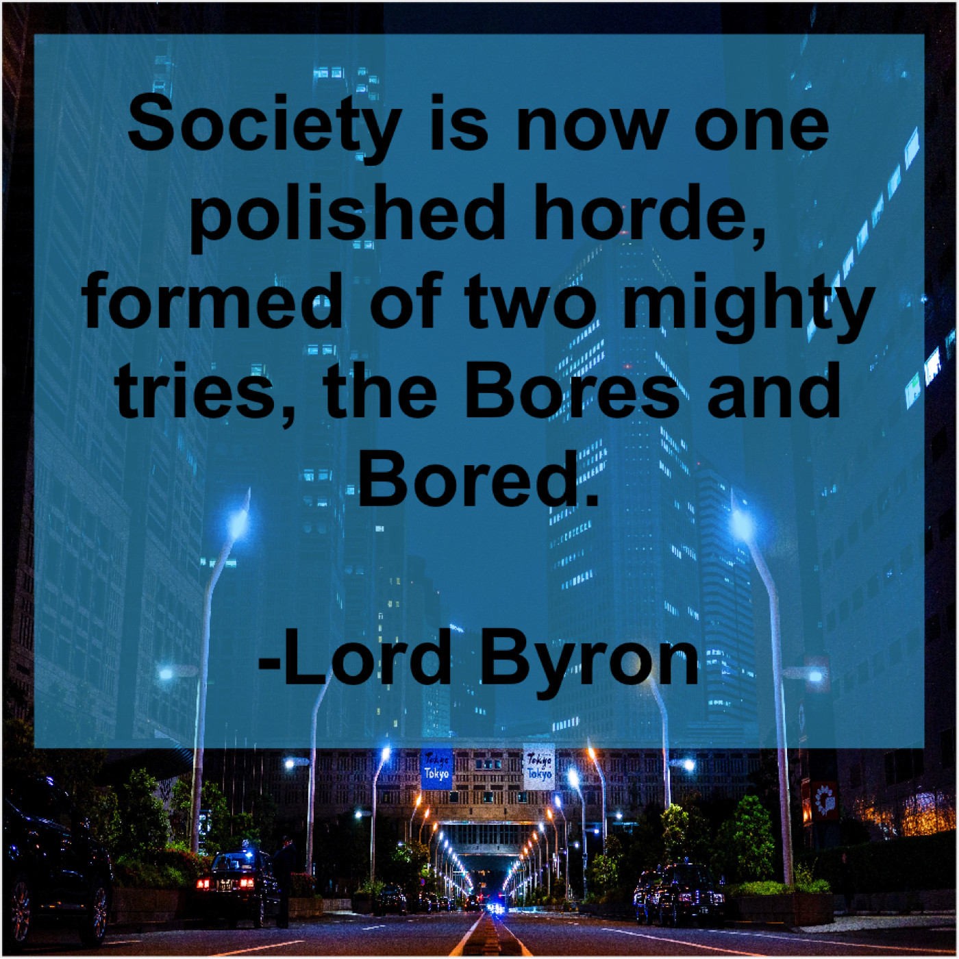 Lord Byron Lord Byron – Society is now one polished… May 31, 2019 admin “Society is now one polished horde, formed of two mighty tries, the Bores and Bored.”-Lord Byron
