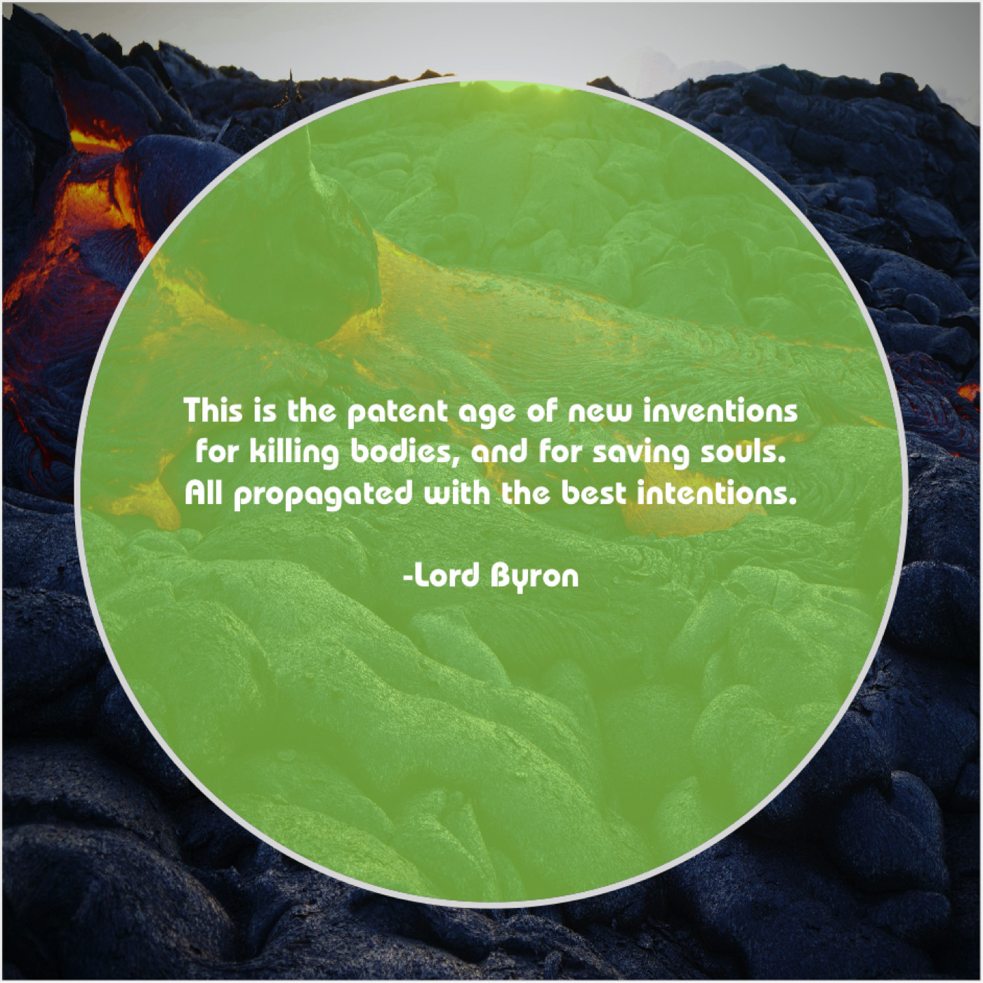 Lord Byron Lord Byron – This is the patent age… June 13, 2019 admin “This is the patent age of new inventions for killing bodies, and for saving souls. All propagated with the best intentions.”-Lord Byron