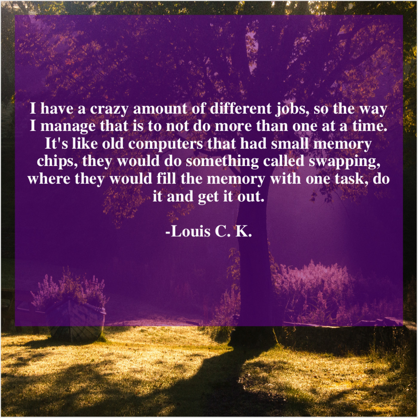 “I have a crazy amount of different jobs, so the way I manage that is to not do more than one at a time. It’s like old computers that had small memory chips, they would do something called swapping, where they would fill the memory with one task, do it and get it out.”