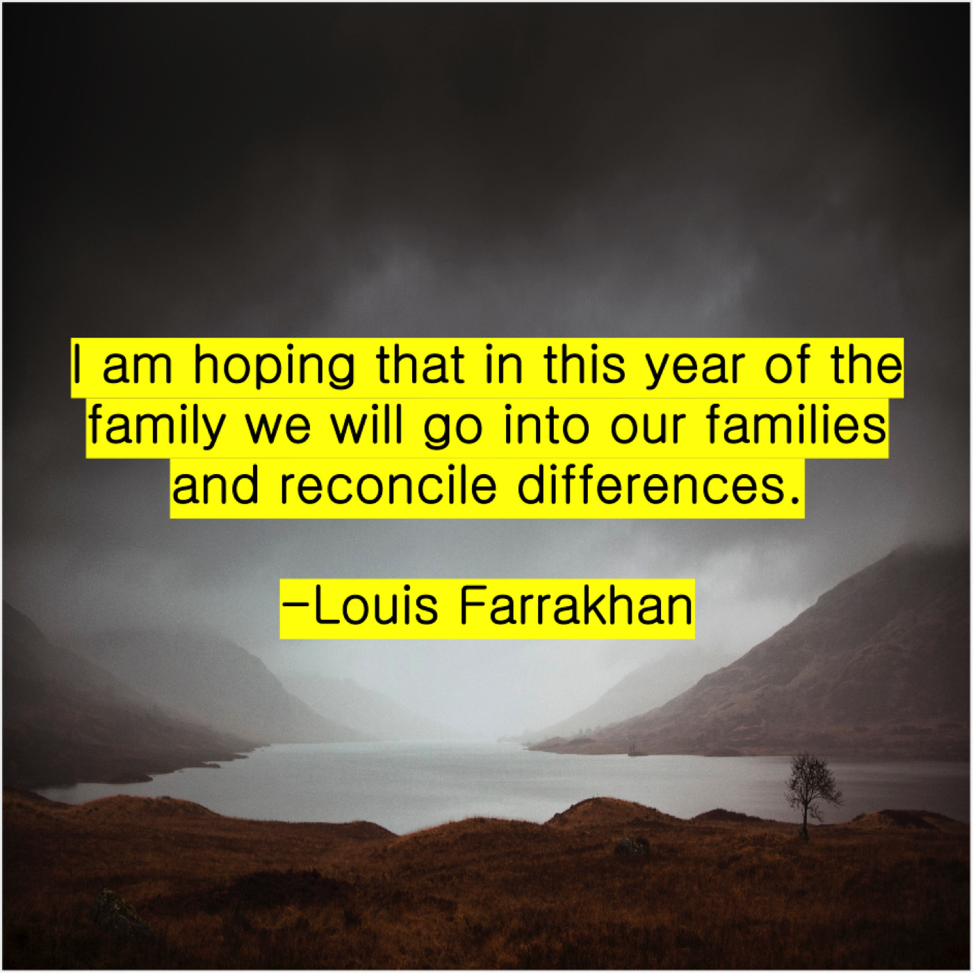 Louis Farrakhan Louis Farrakhan – I am hoping that in… April 23, 2019 admin “I am hoping that in this year of the family we will go into our families and reconcile differences.”-Louis Farrakhan