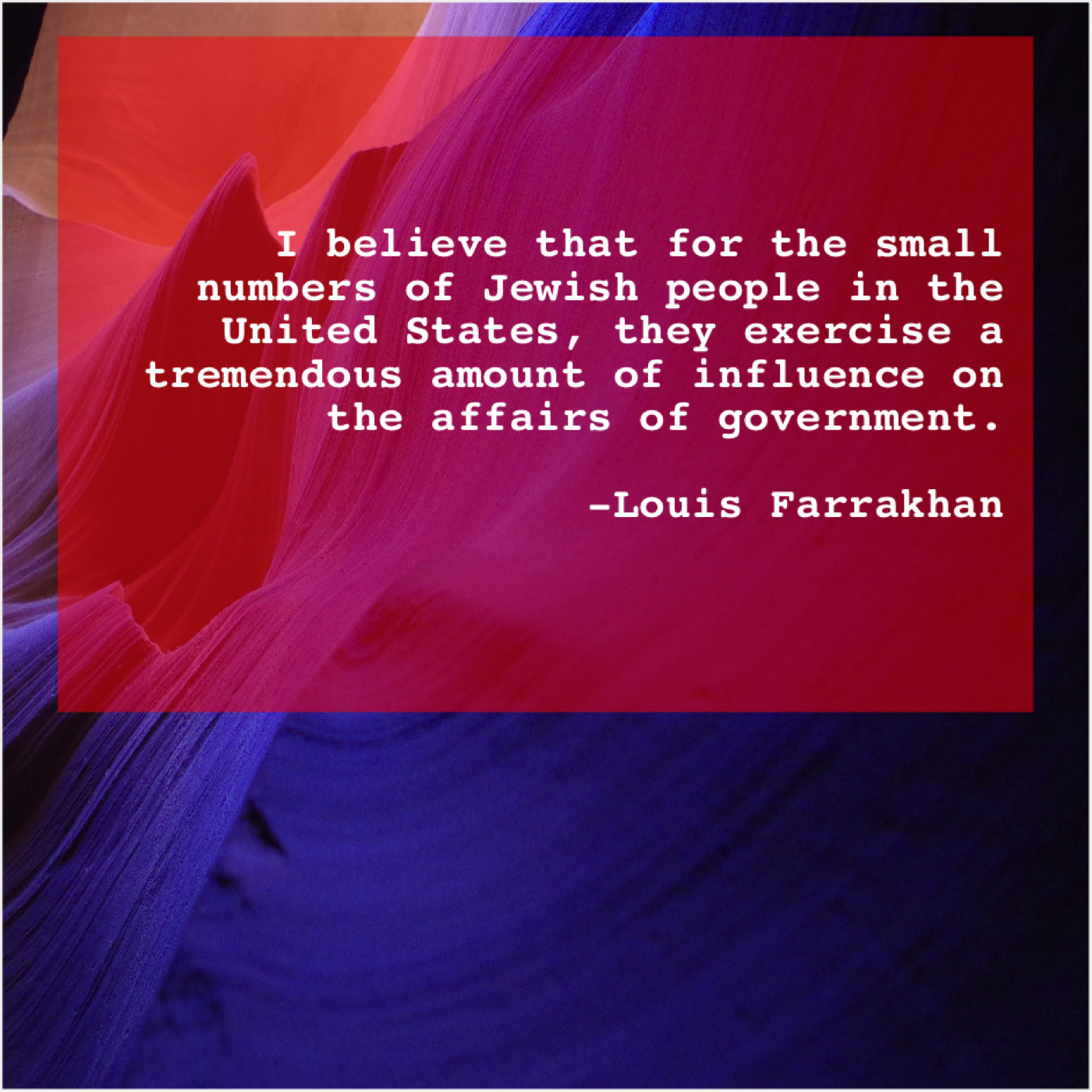 Louis Farrakhan Louis Farrakhan – I believe that for the… January 1, 2019 admin “I believe that for the small numbers of Jewish people in the United States, they exercise a tremendous amount of influence on the affairs of government.”-Louis Farrakhan