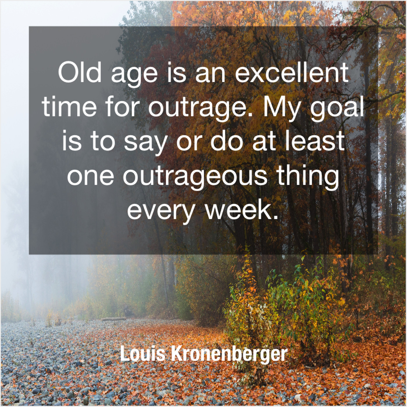 Louis Kronenberger Louis Kronenberger – Old age is an excellent… January 12, 2019 admin “Old age is an excellent time for outrage. My goal is to say or do at least one outrageous thing every week.”-Louis Kronenberger
