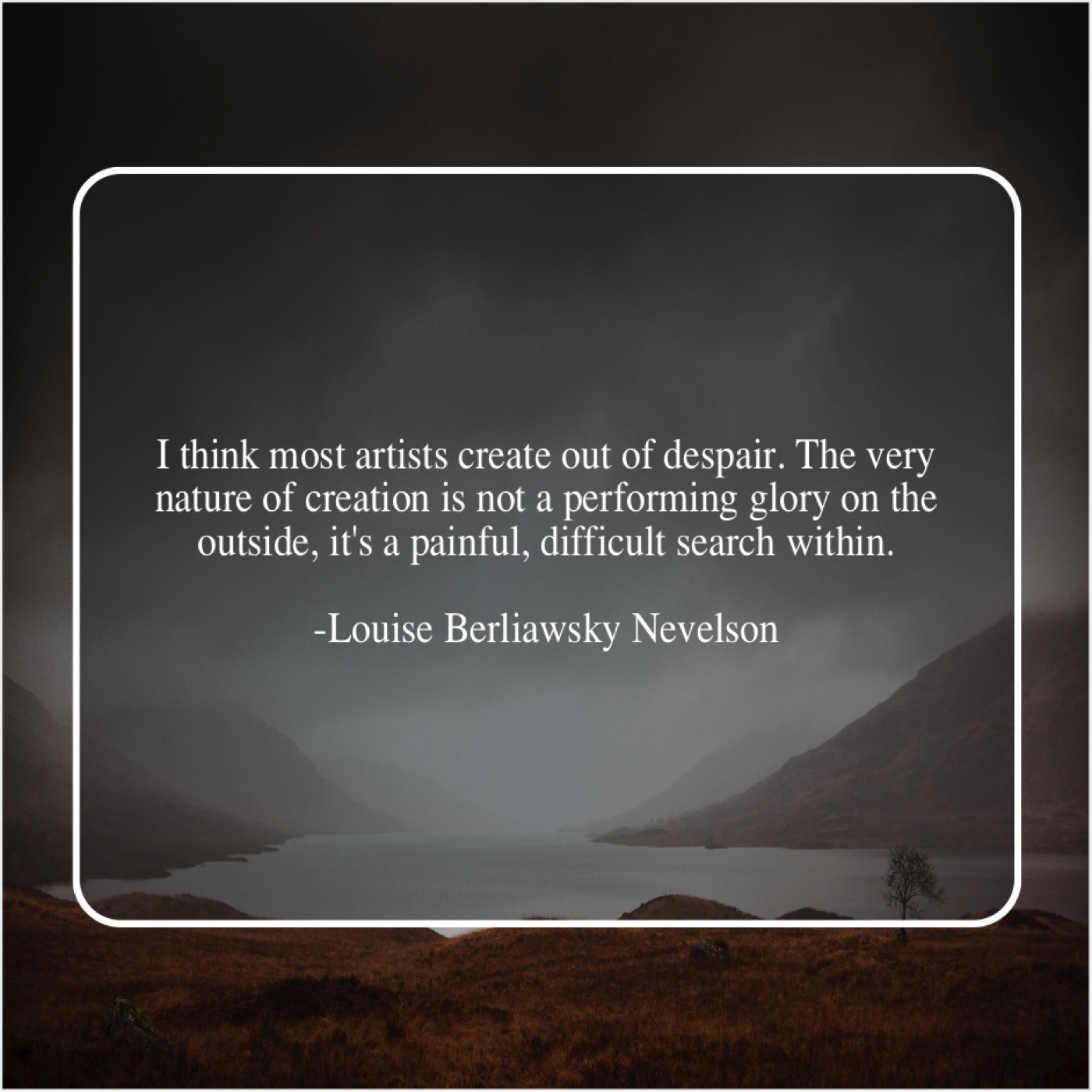 Louise Berliawsky Nevelson Louise Berliawsky Nevelson – I think most artists create… February 1, 2019 admin “I think most artists create out of despair. The very nature of creation is not a performing glory on the outside, it’s a painful, difficult search within.”-Louise Berliawsky Nevelson