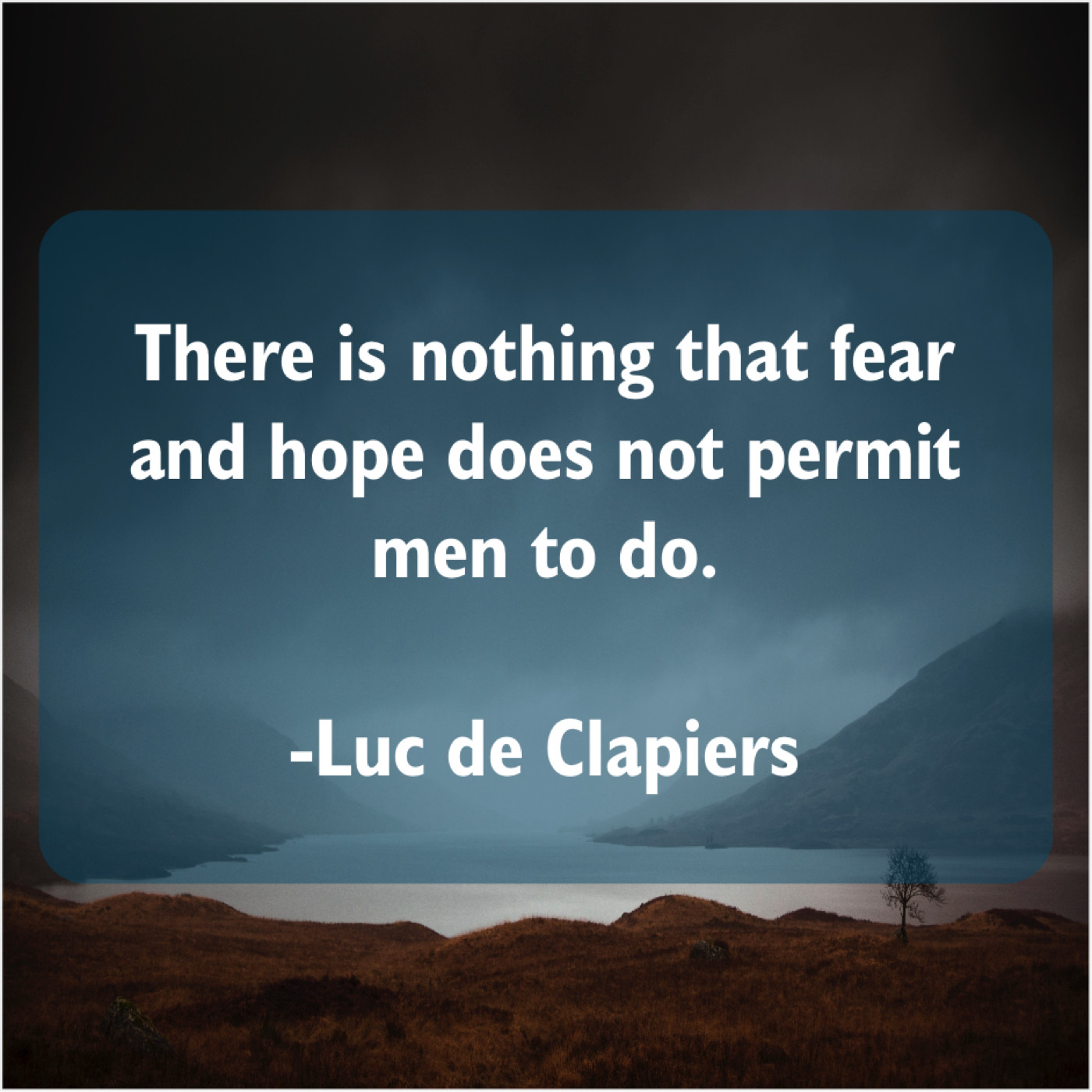Luc de Clapiers Luc de Clapiers – There is nothing that fear… December 6, 2018 admin “There is nothing that fear and hope does not permit men to do.”-Luc de Clapiers