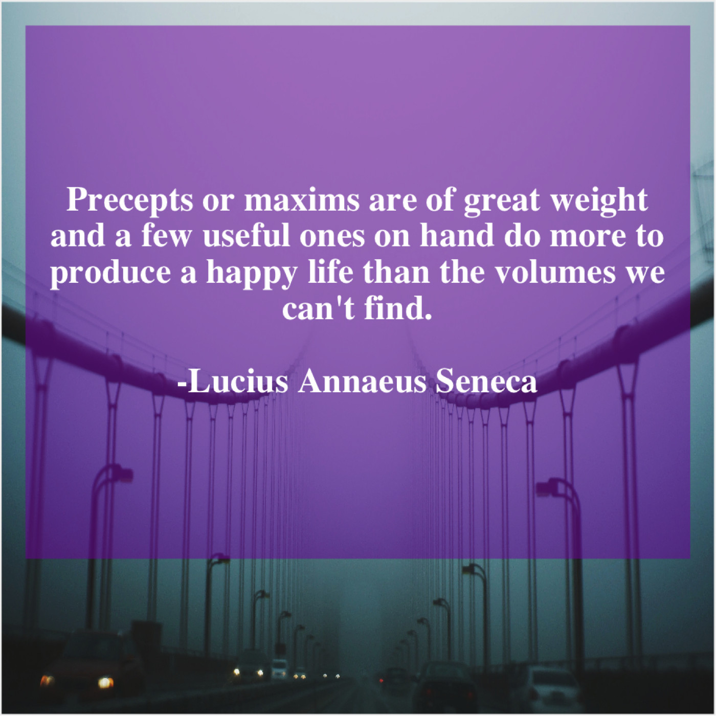 Lucius Annaeus Seneca Lucius Annaeus Seneca – Precepts or maxims are of… October 20, 2019 admin “Precepts or maxims are of great weight and a few useful ones on hand do more to produce a happy life than the volumes we can’t find.”-Lucius Annaeus Seneca
