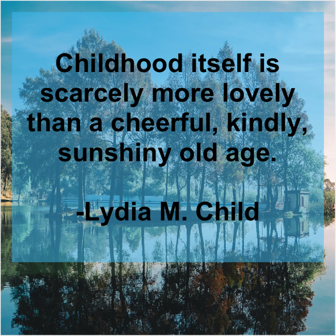 Lydia M. Child Lydia M. Child – Childhood itself is scarcely more… January 21, 2019 admin “Childhood itself is scarcely more lovely than a cheerful, kindly, sunshiny old age.”-Lydia M. Child