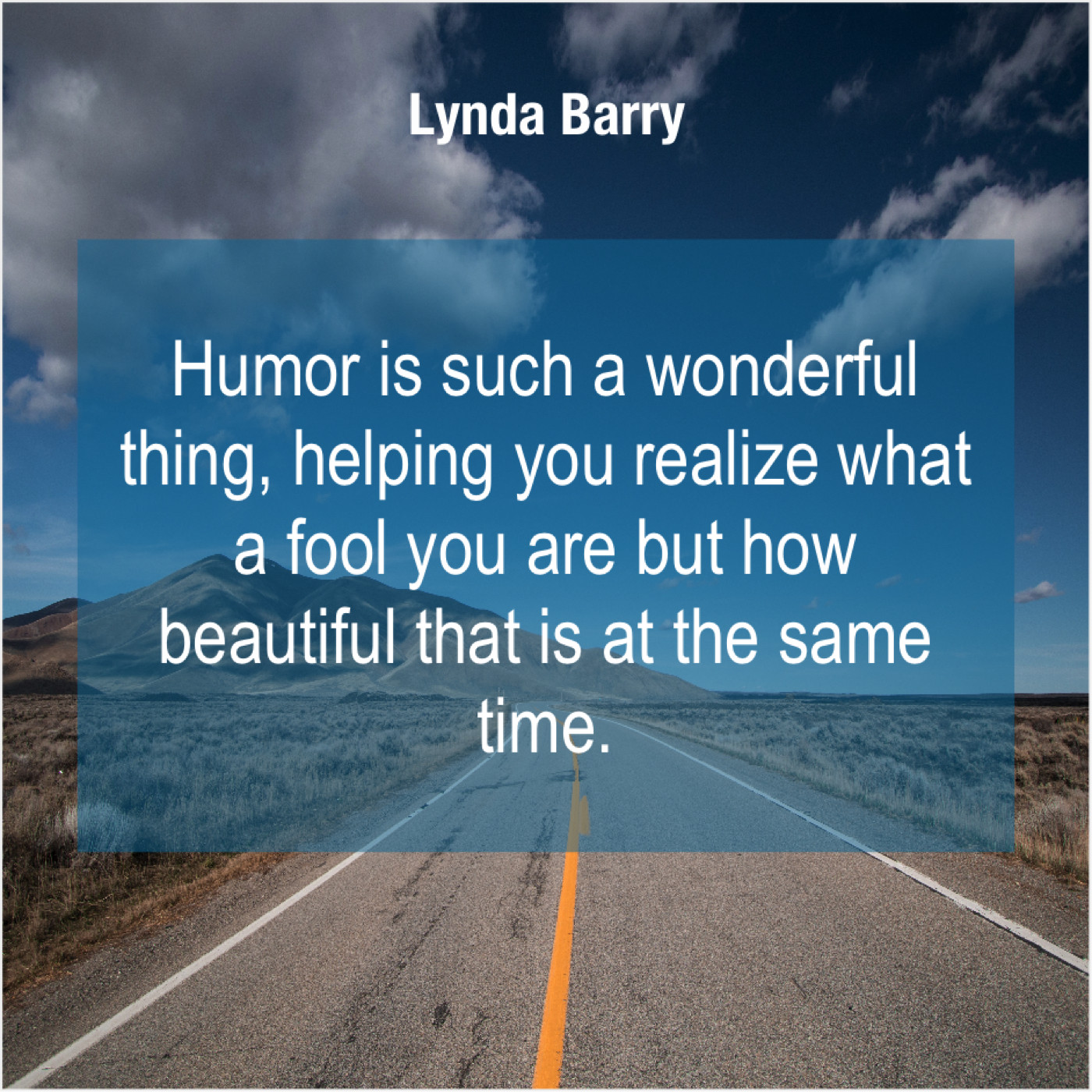 Lynda Barry Lynda Barry – Humor is such a wonderful… October 19, 2019 admin “Humor is such a wonderful thing, helping you realize what a fool you are but how beautiful that is at the same time.”-Lynda Barry