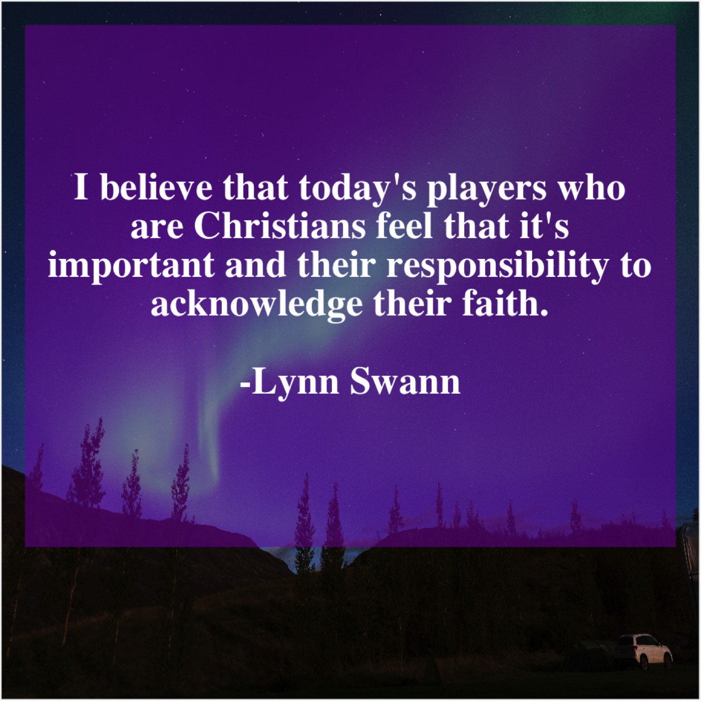 Lynn Swann Lynn Swann – I believe that today’s players… December 14, 2018 admin “I believe that today’s players who are Christians feel that it’s important and their responsibility to acknowledge their faith.”-Lynn Swann