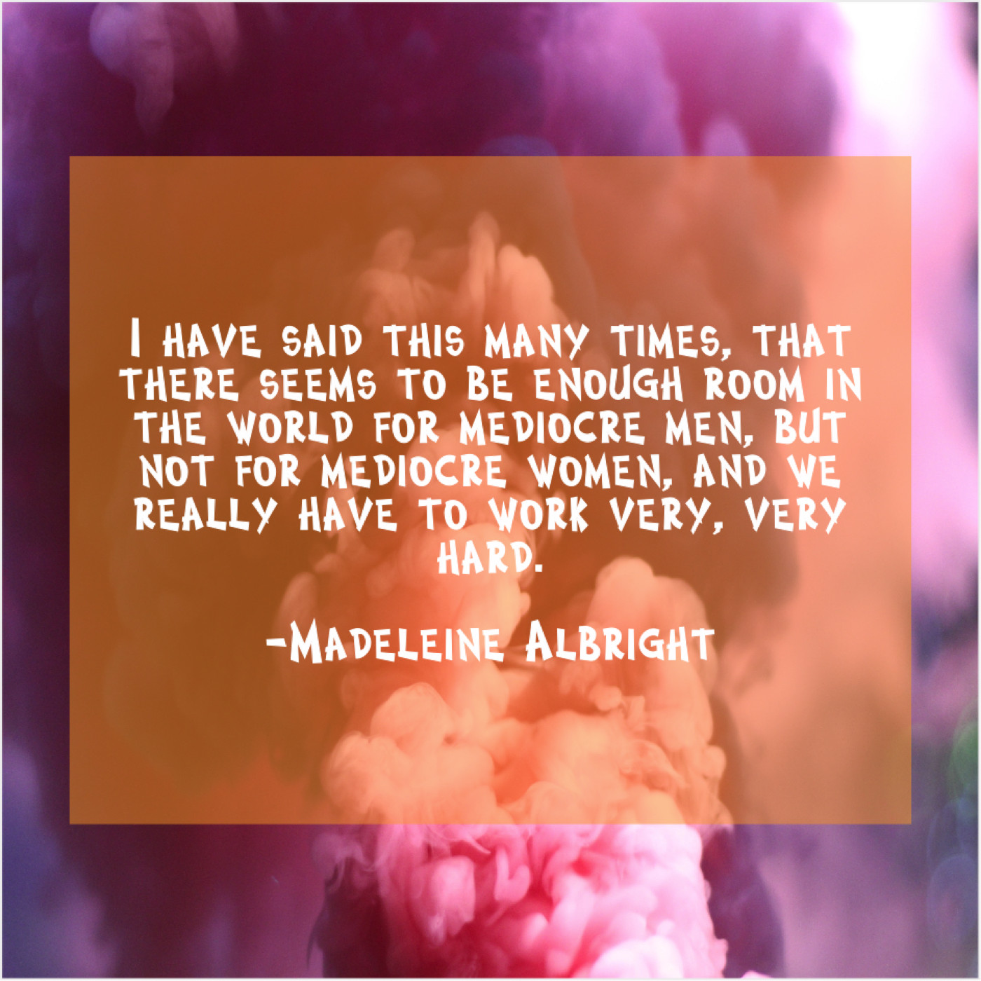 Madeleine Albright Madeleine Albright – I have said this many… December 23, 2018 admin “I have said this many times, that there seems to be enough room in the world for mediocre men, but not for mediocre women, and we really have to work very, very hard.”-Madeleine Albright
