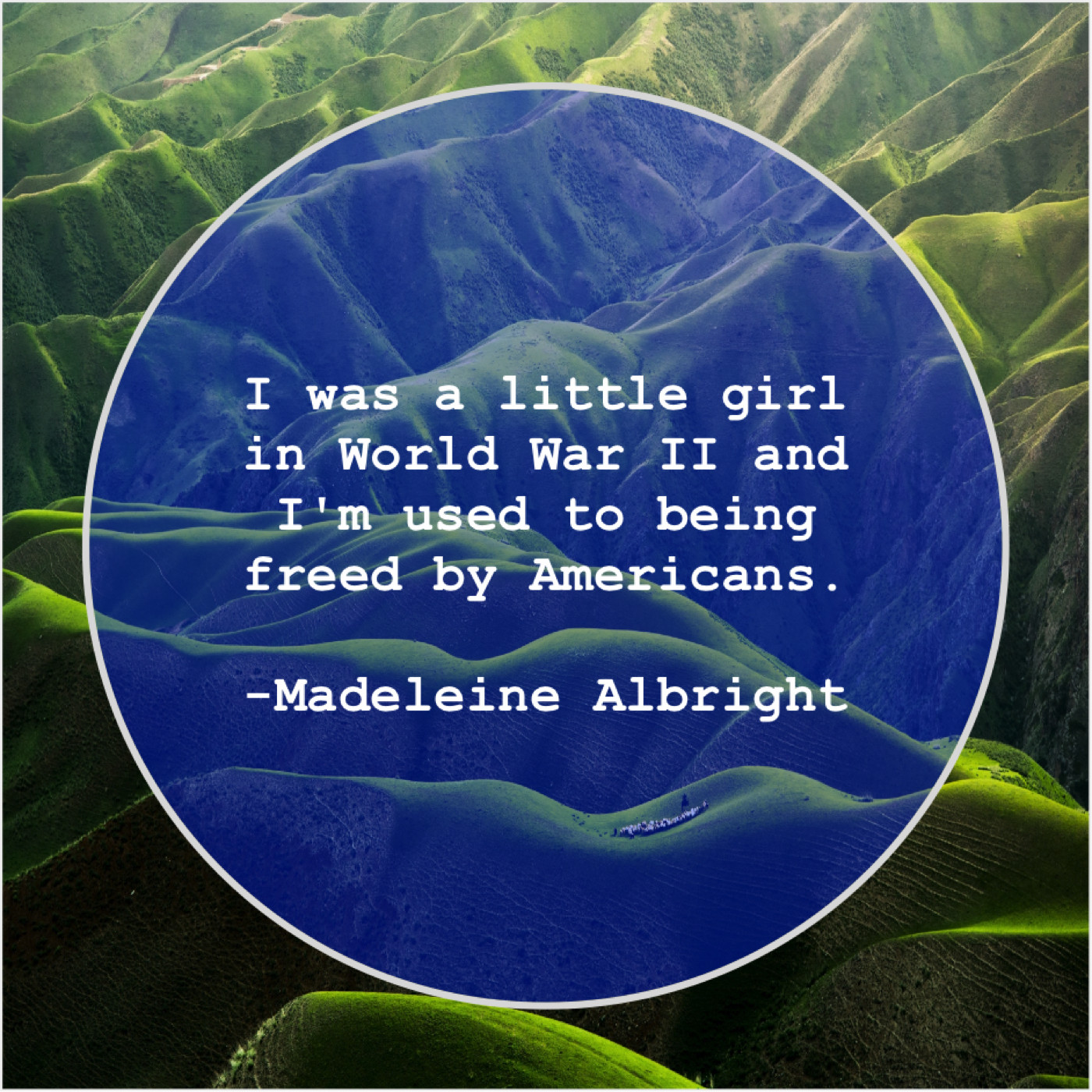 Madeleine Albright Madeleine Albright – I was a little girl… January 25, 2019 admin “I was a little girl in World War II and I’m used to being freed by Americans.”-Madeleine Albright