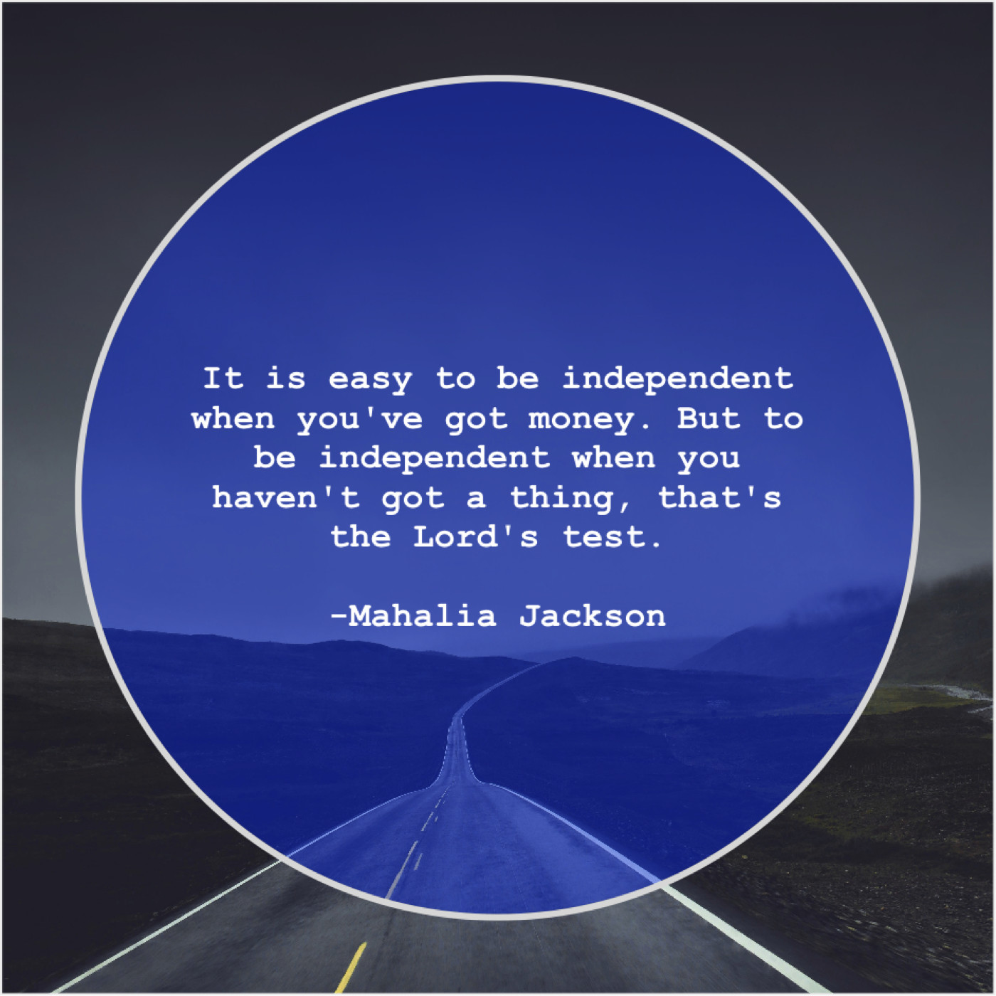 Mahalia Jackson Mahalia Jackson – It is easy to be… April 28, 2019 admin “It is easy to be independent when you’ve got money. But to be independent when you haven’t got a thing, that’s the Lord’s test.”-Mahalia Jackson
