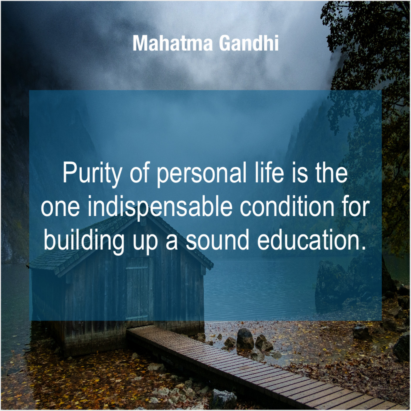 Mahatma Gandhi Mahatma Gandhi – Purity of personal life is… October 21, 2019 admin “Purity of personal life is the one indispensable condition for building up a sound education.”-Mahatma Gandhi