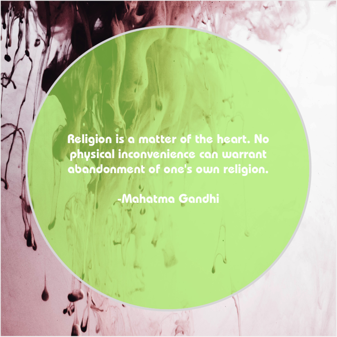 Mahatma Gandhi Mahatma Gandhi – Religion is a matter of… October 18, 2019 admin “Religion is a matter of the heart. No physical inconvenience can warrant abandonment of one’s own religion.”-Mahatma Gandhi