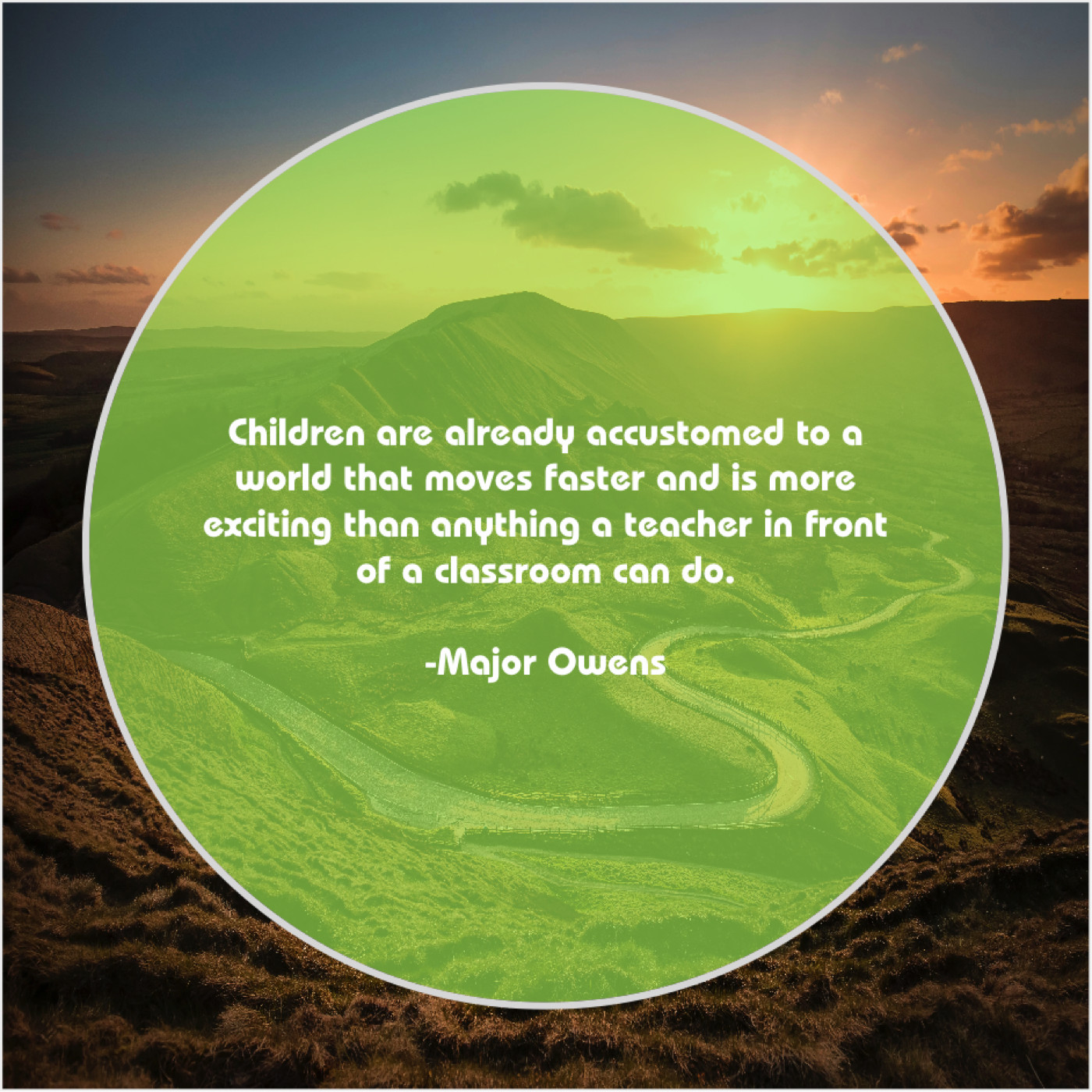 Major Owens Major Owens – Children are already accustomed to… October 2, 2019 admin “Children are already accustomed to a world that moves faster and is more exciting than anything a teacher in front of a classroom can do.”-Major Owens