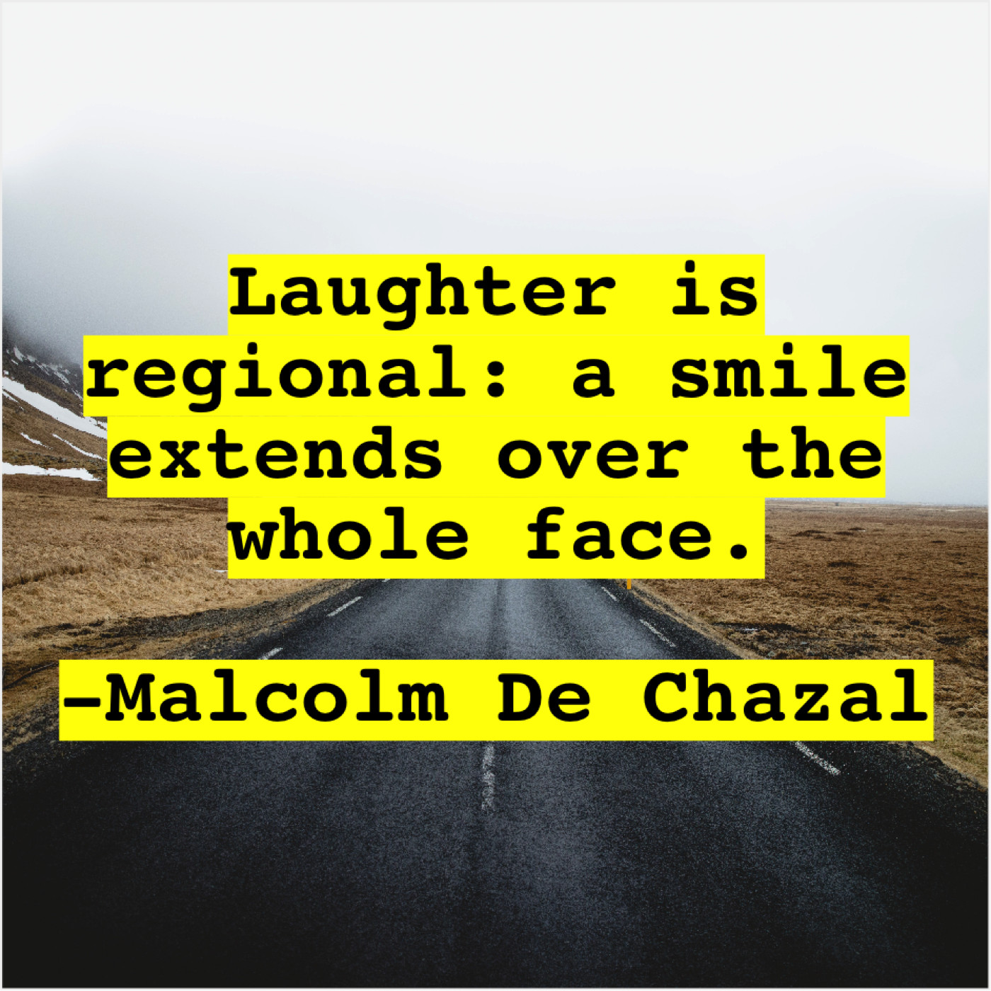 Malcolm De Chazal Malcolm De Chazal – Laughter is regional: a smile… November 21, 2018 admin “Laughter is regional: a smile extends over the whole face.”-Malcolm De Chazal