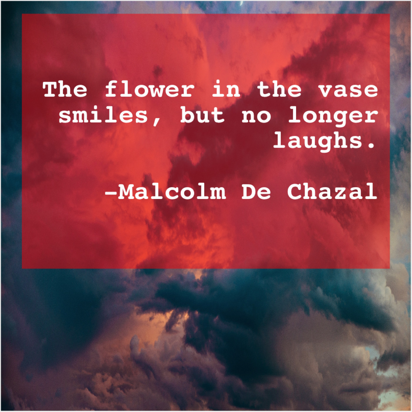 Malcolm De Chazal Malcolm De Chazal – The flower in the vase… August 29, 2019 admin “The flower in the vase smiles, but no longer laughs.”-Malcolm De Chazal