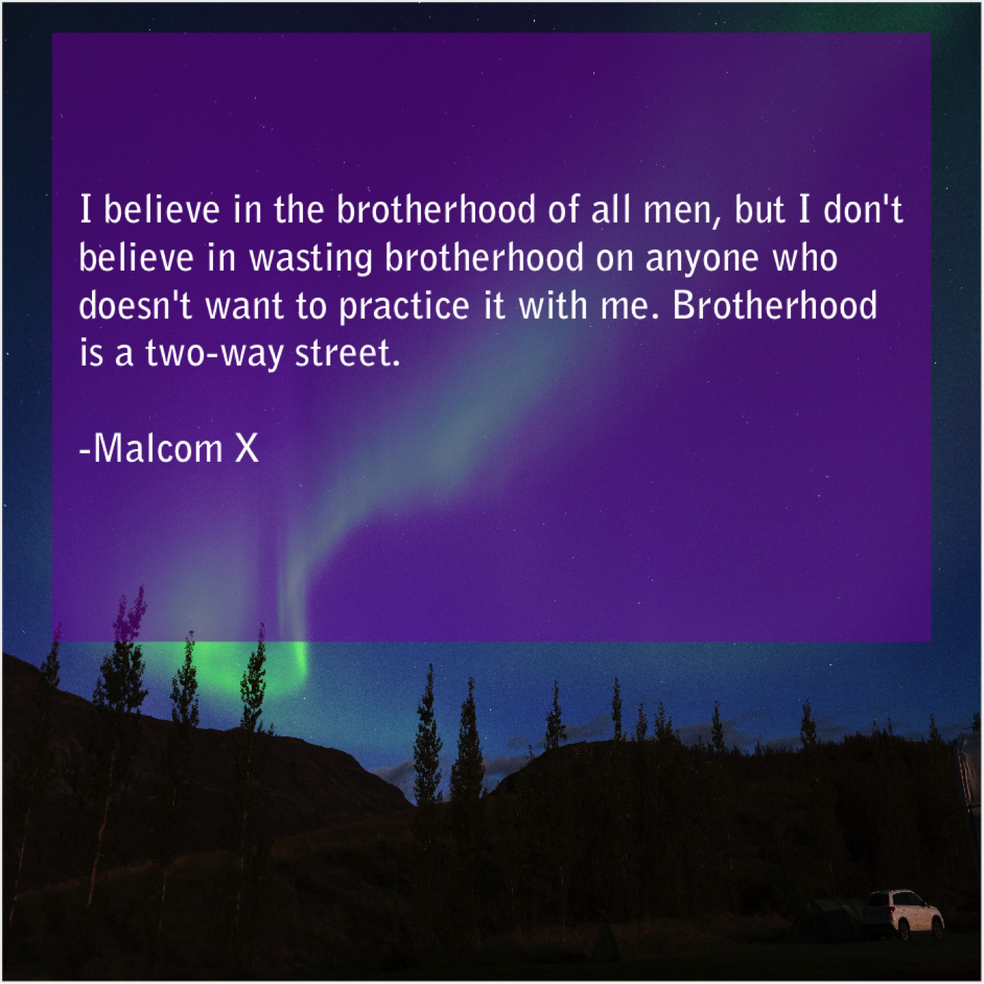 Malcom X Malcom X – I believe in the brotherhood… March 5, 2019 admin “I believe in the brotherhood of all men, but I don’t believe in wasting brotherhood on anyone who doesn’t want to practice it with me. Brotherhood is a two-way street.”-Malcom X