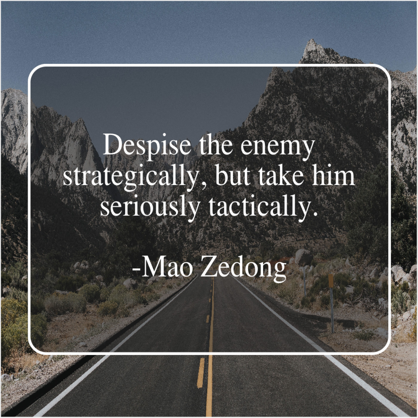 Mao Zedong Mao Zedong – Despise the enemy strategically, but… December 1, 2018 admin “Despise the enemy strategically, but take him seriously tactically.”-Mao Zedong