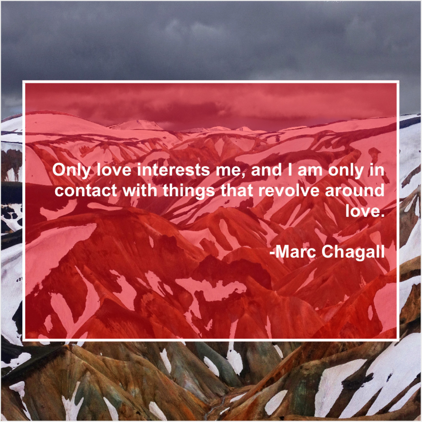 Marc Chagall Marc Chagall – Only love interests me, and… February 12, 2019 admin “Only love interests me, and I am only in contact with things that revolve around love.”-Marc Chagall
