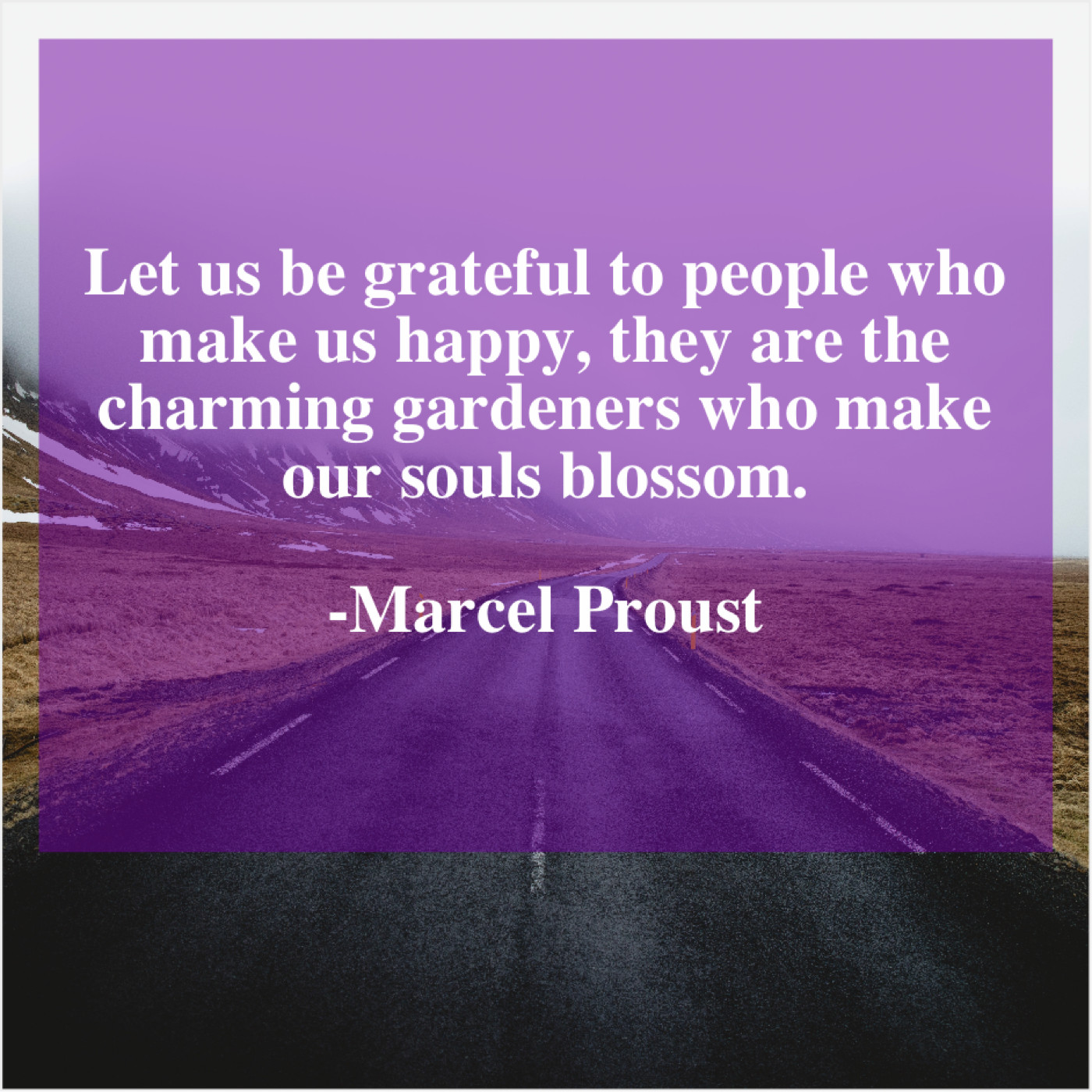 Marcel Proust Marcel Proust – Let us be grateful to… January 14, 2019 admin “Let us be grateful to people who make us happy, they are the charming gardeners who make our souls blossom.”-Marcel Proust