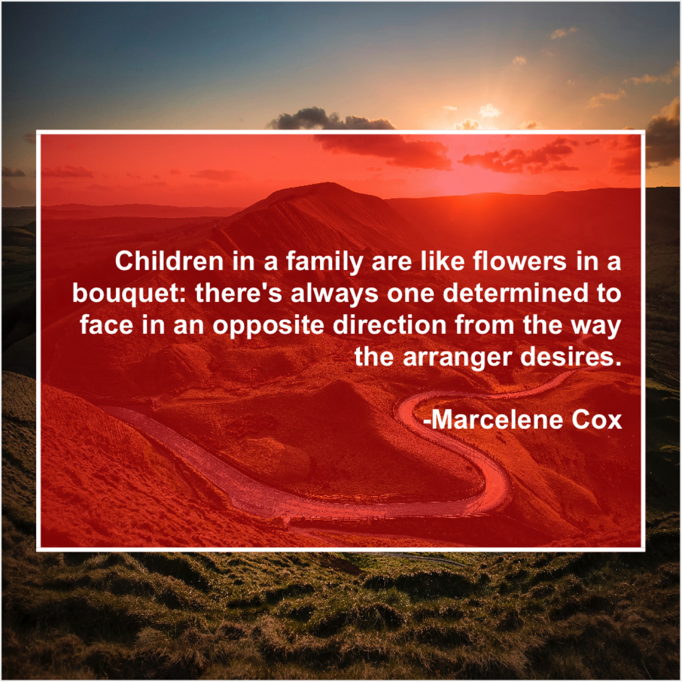 Marcelene Cox Marcelene Cox – Children in a family are… August 23, 2019 admin “Children in a family are like flowers in a bouquet: there’s always one determined to face in an opposite direction from the way the arranger desires.”-Marcelene Cox