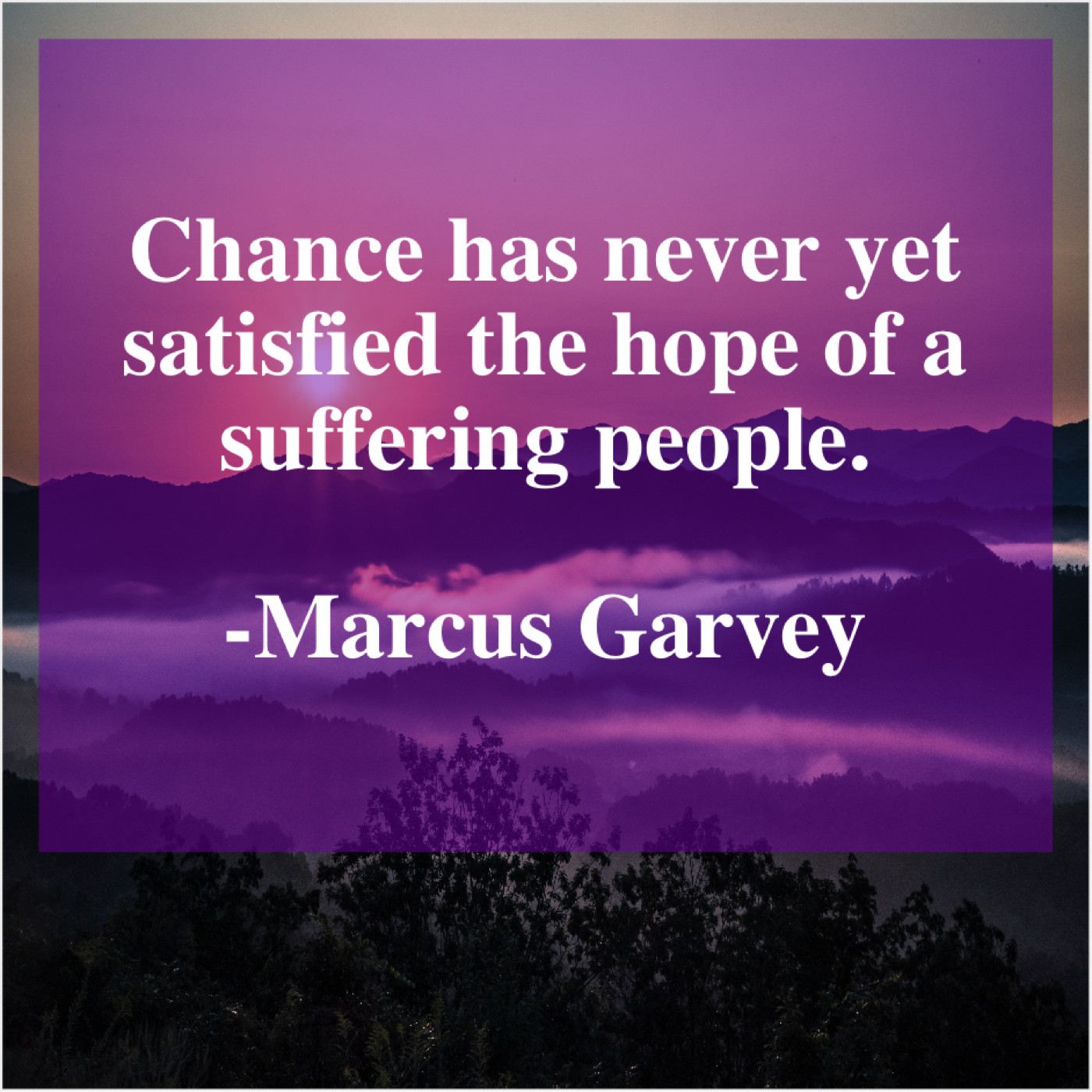 Marcus Garvey Marcus Garvey – Chance has never yet satisfied… February 25, 2019 admin “Chance has never yet satisfied the hope of a suffering people.”-Marcus Garvey