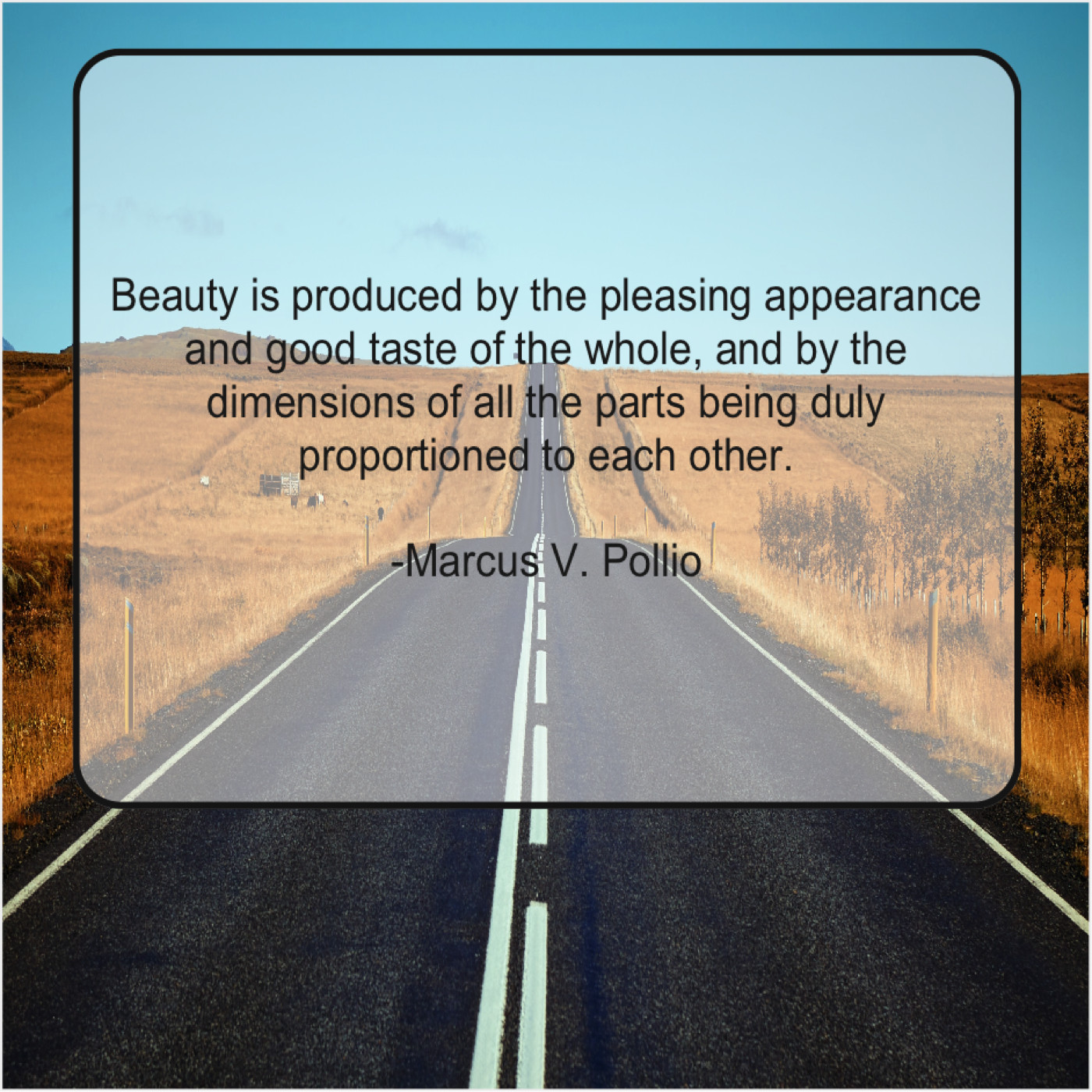 Marcus V. Pollio Marcus V. Pollio – Beauty is produced by the… September 16, 2019 admin “Beauty is produced by the pleasing appearance and good taste of the whole, and by the dimensions of all the parts being duly proportioned to each other.”-Marcus V. Pollio