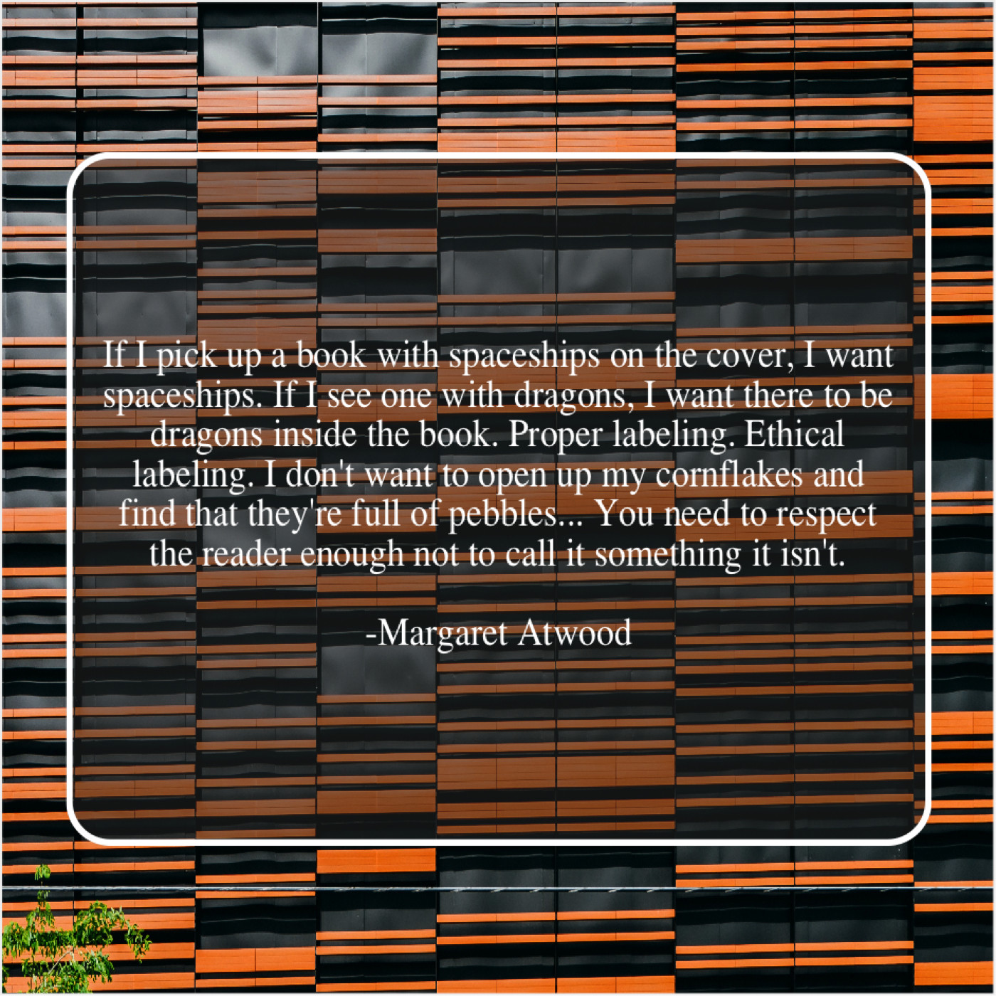 “If I pick up a book with spaceships on the cover, I want spaceships. If I see one with dragons, I want there to be dragons inside the book. Proper labeling. Ethical labeling. I don’t want to open up my cornflakes and find that they’re full of pebbles… You need to respect the reader enough not to call it something it isn’t.”