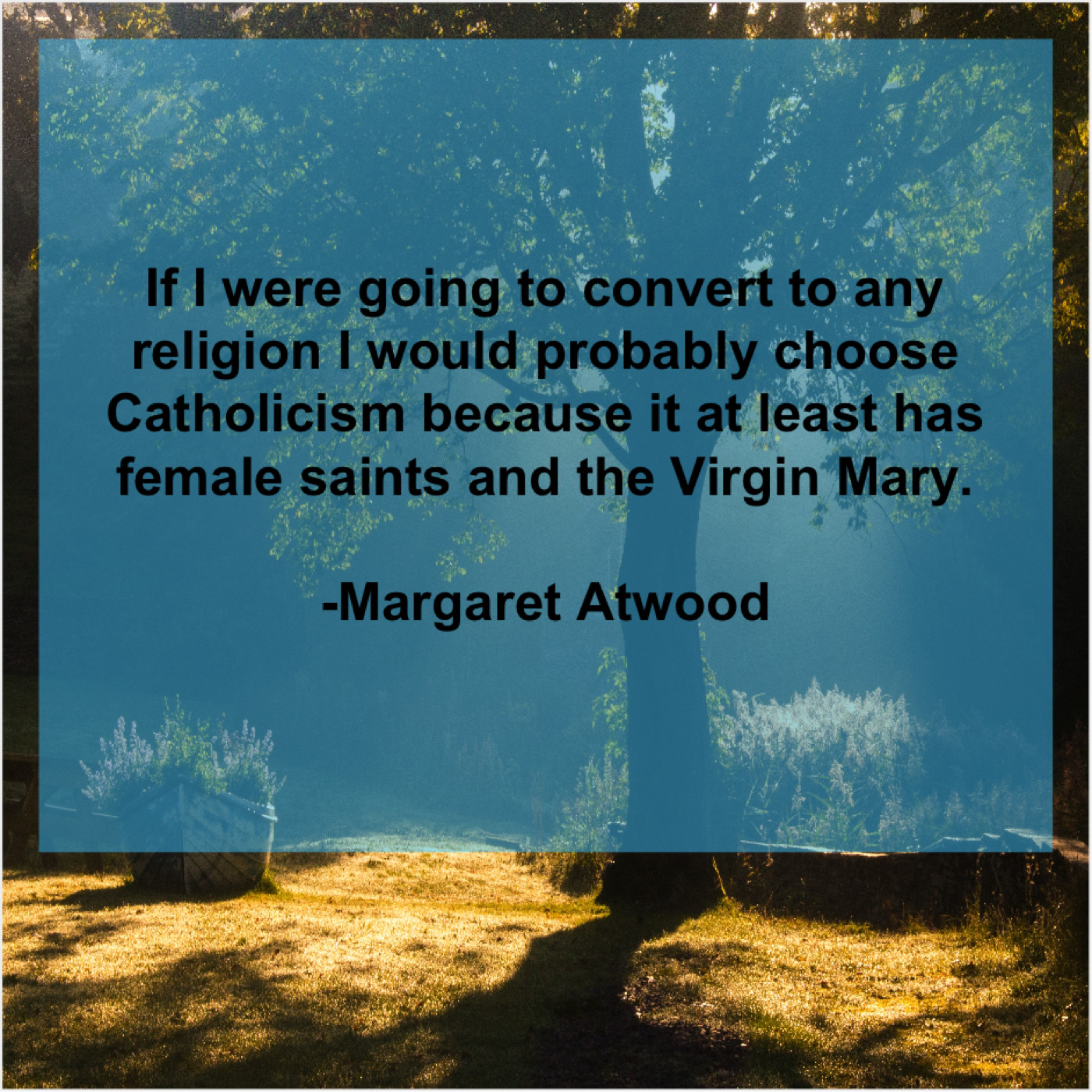 Margaret Atwood Margaret Atwood – If I were going to… January 12, 2019 admin “If I were going to convert to any religion I would probably choose Catholicism because it at least has female saints and the Virgin Mary.”-Margaret Atwood