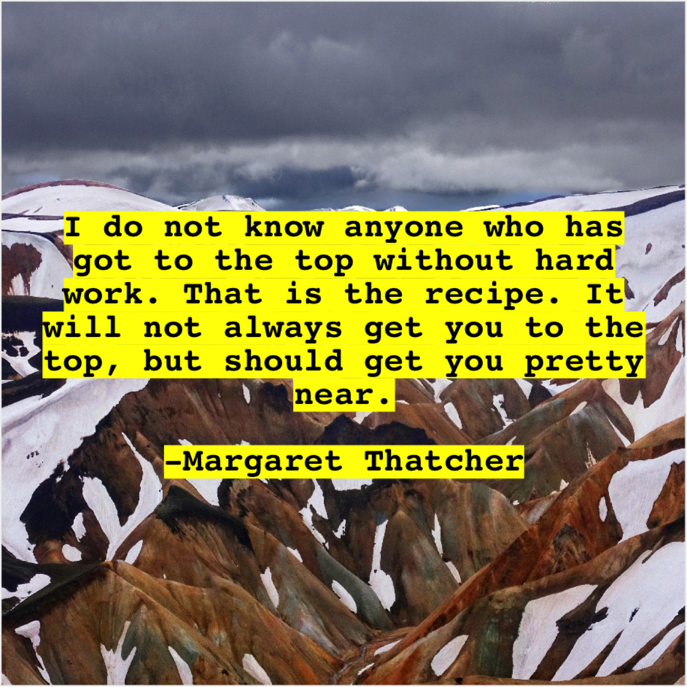 Margaret Thatcher Margaret Thatcher – I do not know anyone… September 1, 2019 admin “I do not know anyone who has got to the top without hard work. That is the recipe. It will not always get you to the top, but should get you pretty near.”-Margaret Thatcher