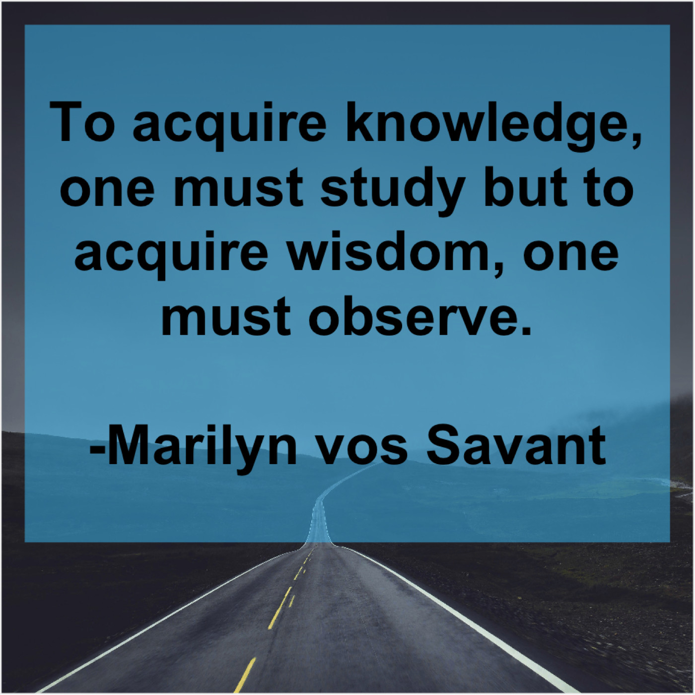 Marilyn vos Savant Marilyn vos Savant – To acquire knowledge, one must… December 30, 2018 admin “To acquire knowledge, one must study but to acquire wisdom, one must observe.”-Marilyn vos Savant