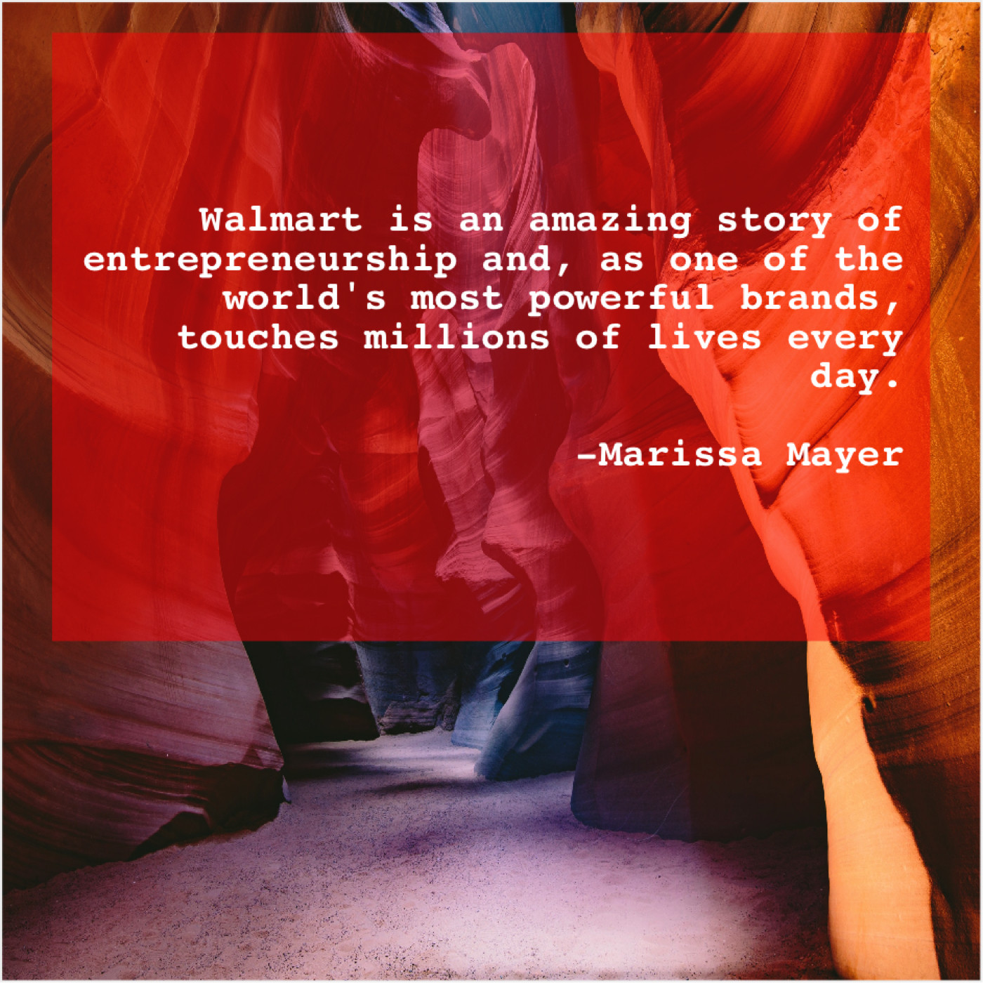 Marissa Mayer Marissa Mayer – Walmart is an amazing story… August 24, 2019 admin “Walmart is an amazing story of entrepreneurship and, as one of the world’s most powerful brands, touches millions of lives every day.”-Marissa Mayer