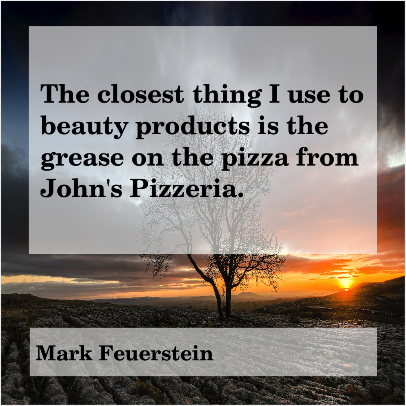 “The closest thing I use to beauty products is the grease on the pizza from John’s Pizzeria.”