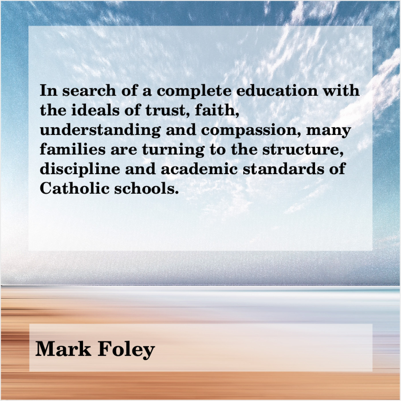 Mark Foley Mark Foley – In search of a complete… April 1, 2019 admin “In search of a complete education with the ideals of trust, faith, understanding and compassion, many families are turning to the structure, discipline and academic standards of Catholic schools.”-Mark Foley