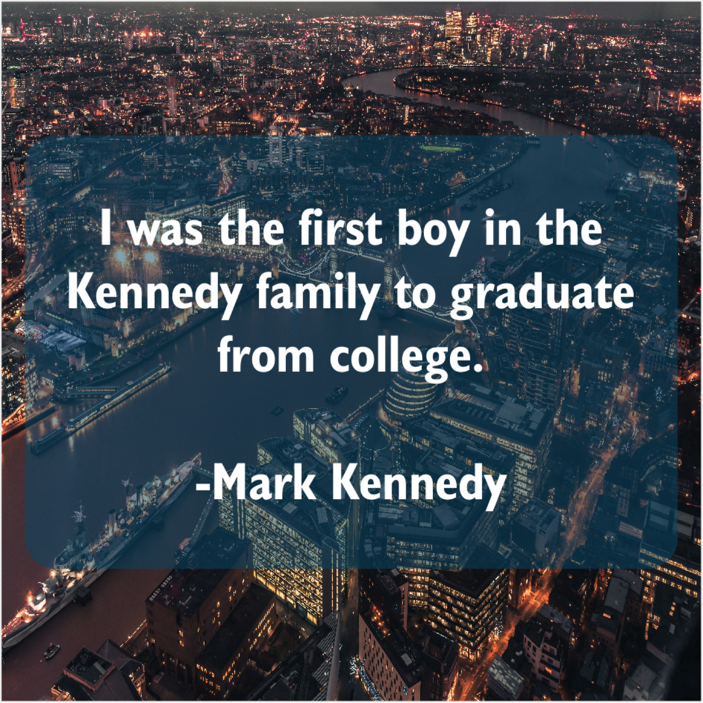 Mark Kennedy Mark Kennedy – I was the first boy… September 13, 2019 admin “I was the first boy in the Kennedy family to graduate from college.”-Mark Kennedy