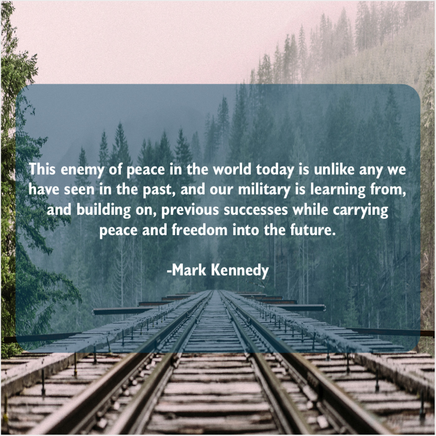 Mark Kennedy Mark Kennedy – This enemy of peace in… September 2, 2019 admin “This enemy of peace in the world today is unlike any we have seen in the past, and our military is learning from, and building on, previous successes while carrying peace and freedom into the future.”-Mark Kennedy