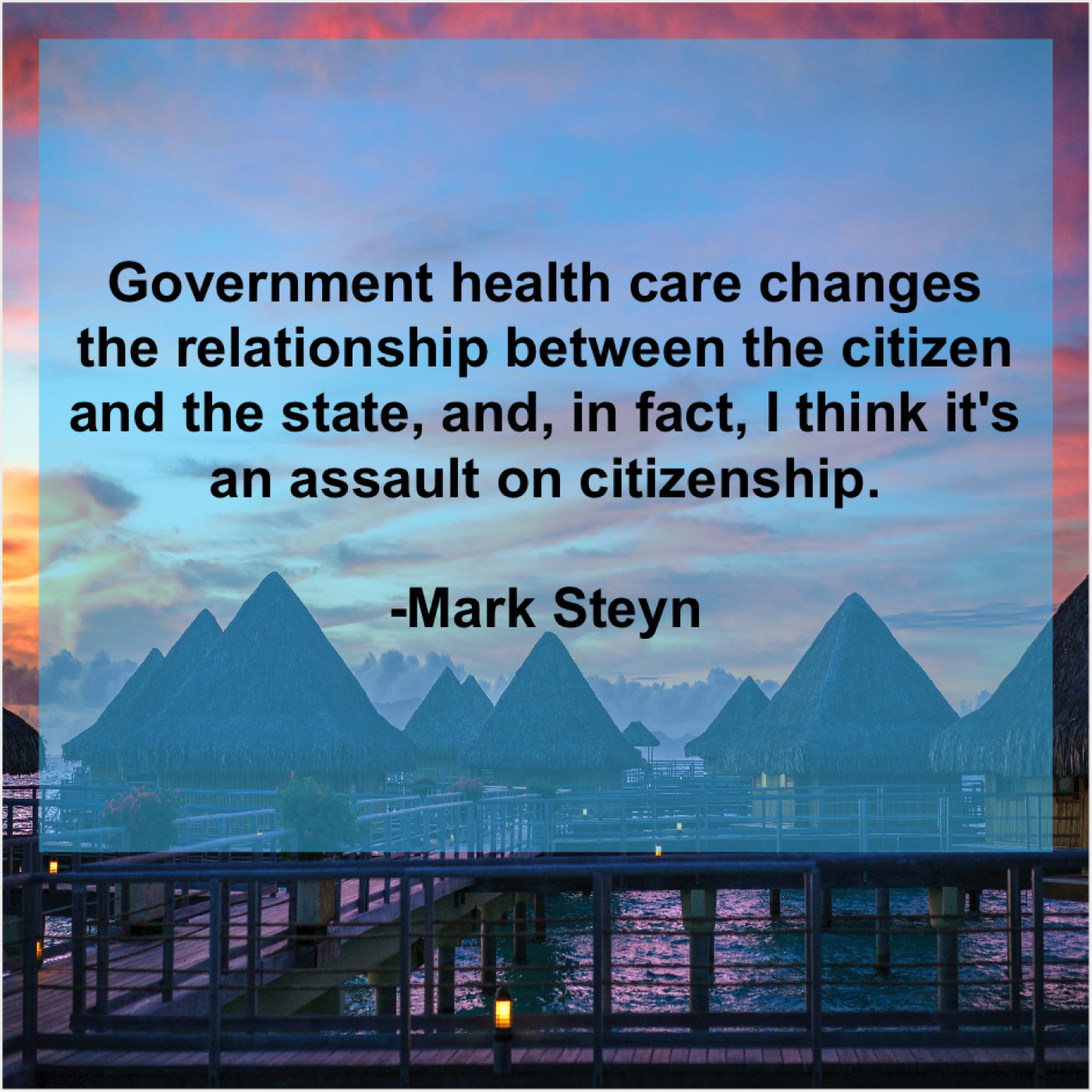 Mark Steyn Mark Steyn – Government health care changes the… March 16, 2019 admin “Government health care changes the relationship between the citizen and the state, and, in fact, I think it’s an assault on citizenship.”-Mark Steyn