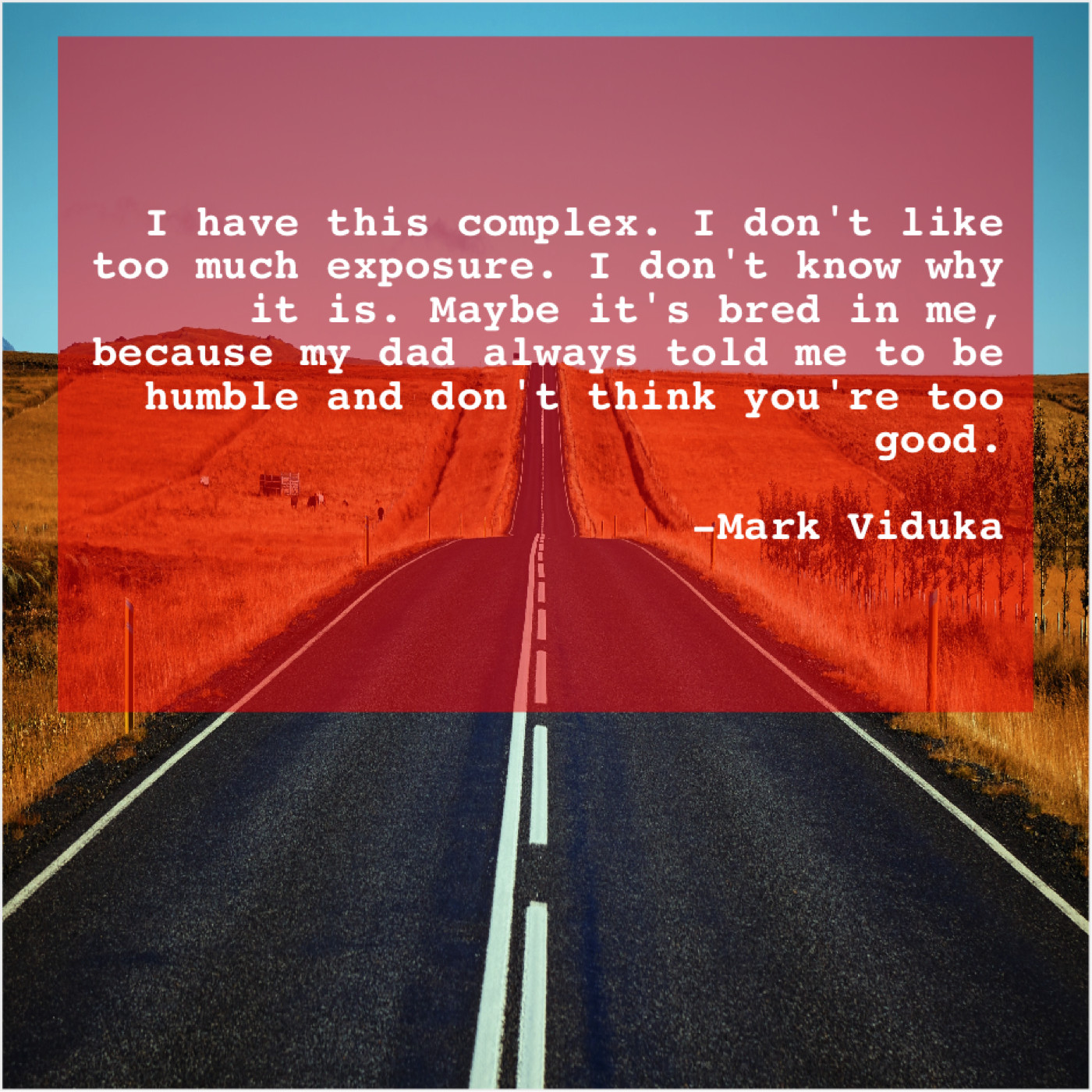 Mark Viduka Mark Viduka – I have this complex. I… December 10, 2018 admin “I have this complex. I don’t like too much exposure. I don’t know why it is. Maybe it’s bred in me, because my dad always told me to be humble and don’t think you’re too good.”-Mark Viduka