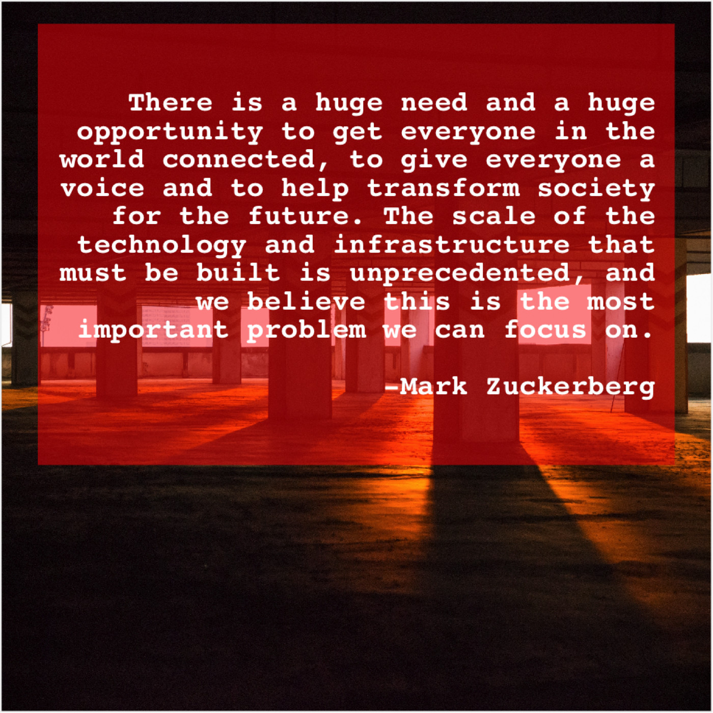 “There is a huge need and a huge opportunity to get everyone in the world connected, to give everyone a voice and to help transform society for the future. The scale of the technology and infrastructure that must be built is unprecedented, and we believe this is the most important problem we can focus on.”