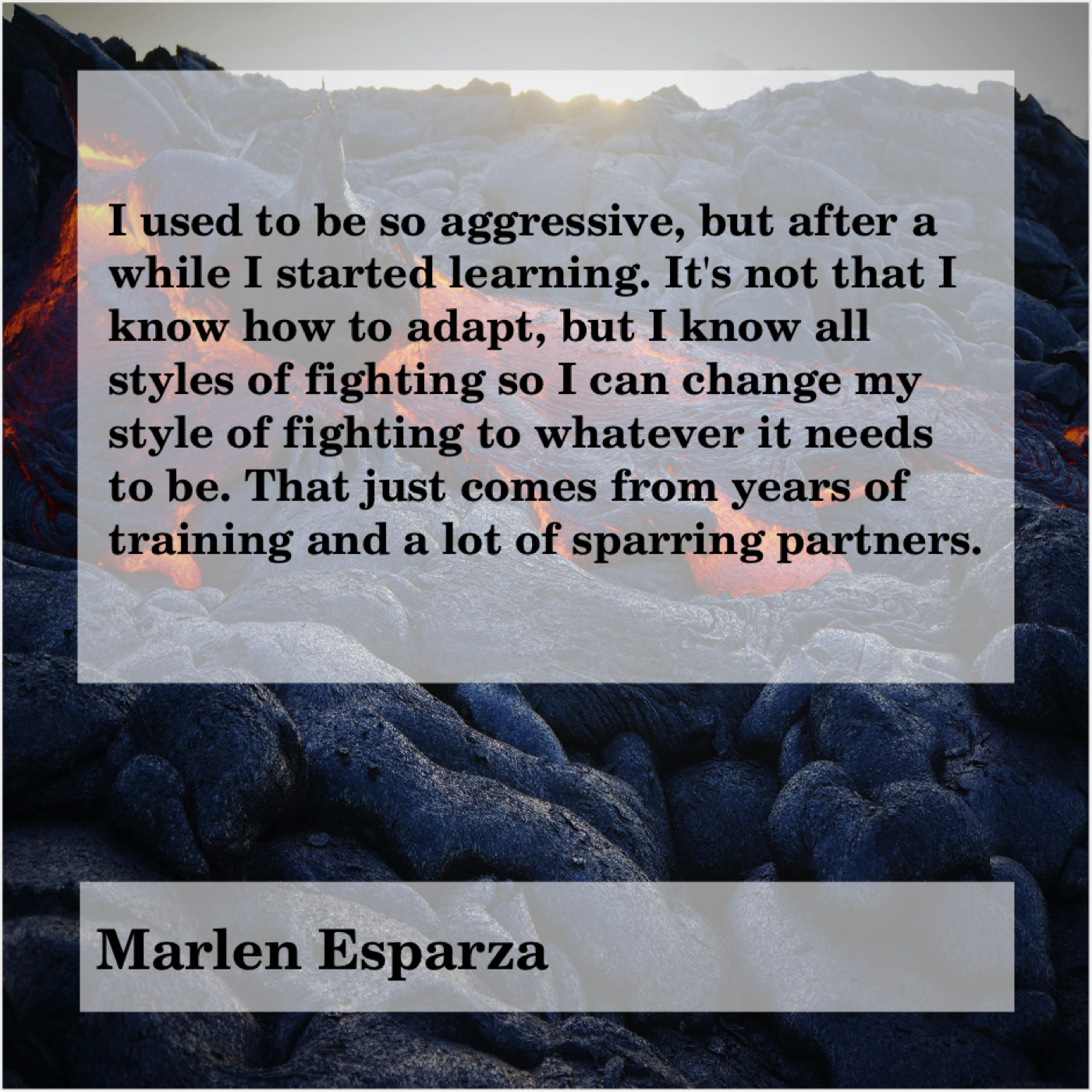 “I used to be so aggressive, but after a while I started learning. It’s not that I know how to adapt, but I know all styles of fighting so I can change my style of fighting to whatever it needs to be. That just comes from years of training and a lot of sparring partners.”