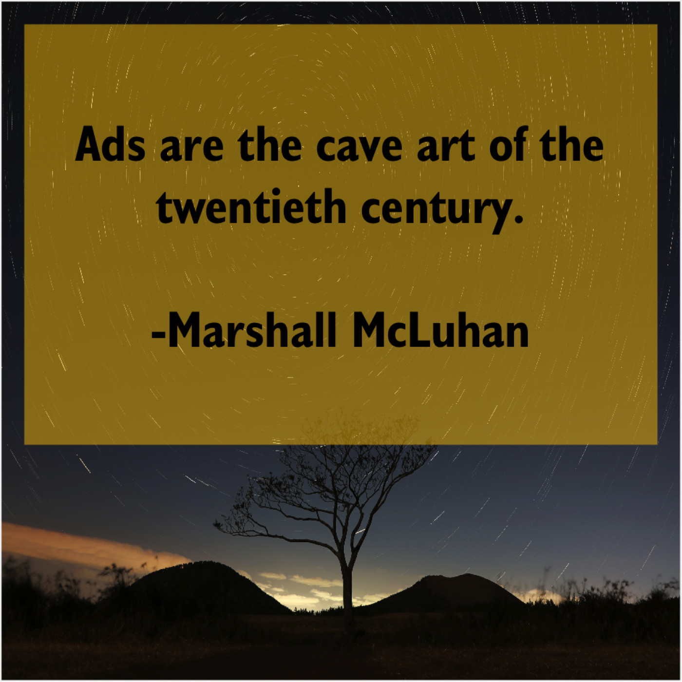Marshall McLuhan Marshall McLuhan – Ads are the cave art… January 2, 2019 admin “Ads are the cave art of the twentieth century.”-Marshall McLuhan