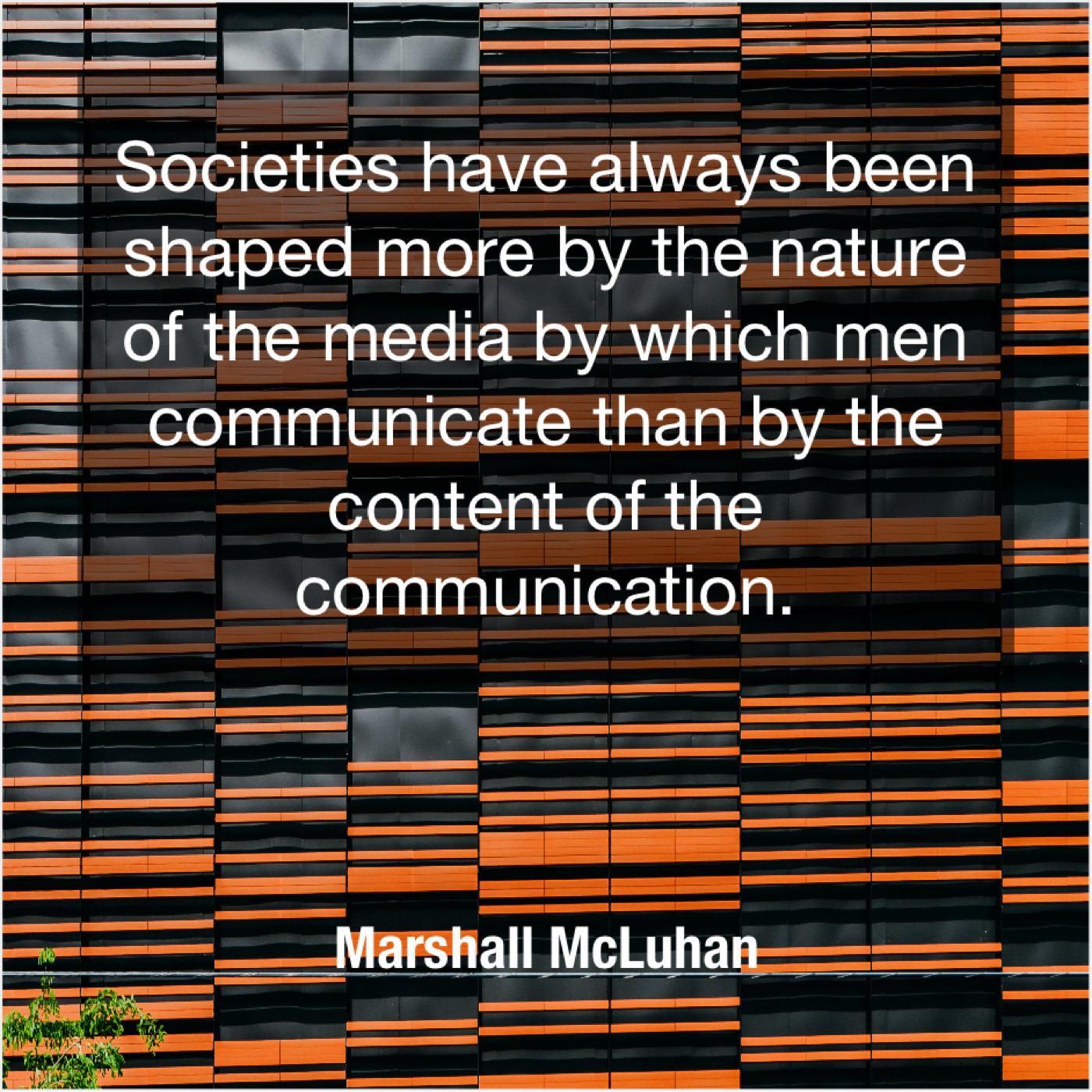 Marshall McLuhan Marshall McLuhan – Societies have always been shaped… October 31, 2018 admin “Societies have always been shaped more by the nature of the media by which men communicate than by the content of the communication.”-Marshall McLuhan