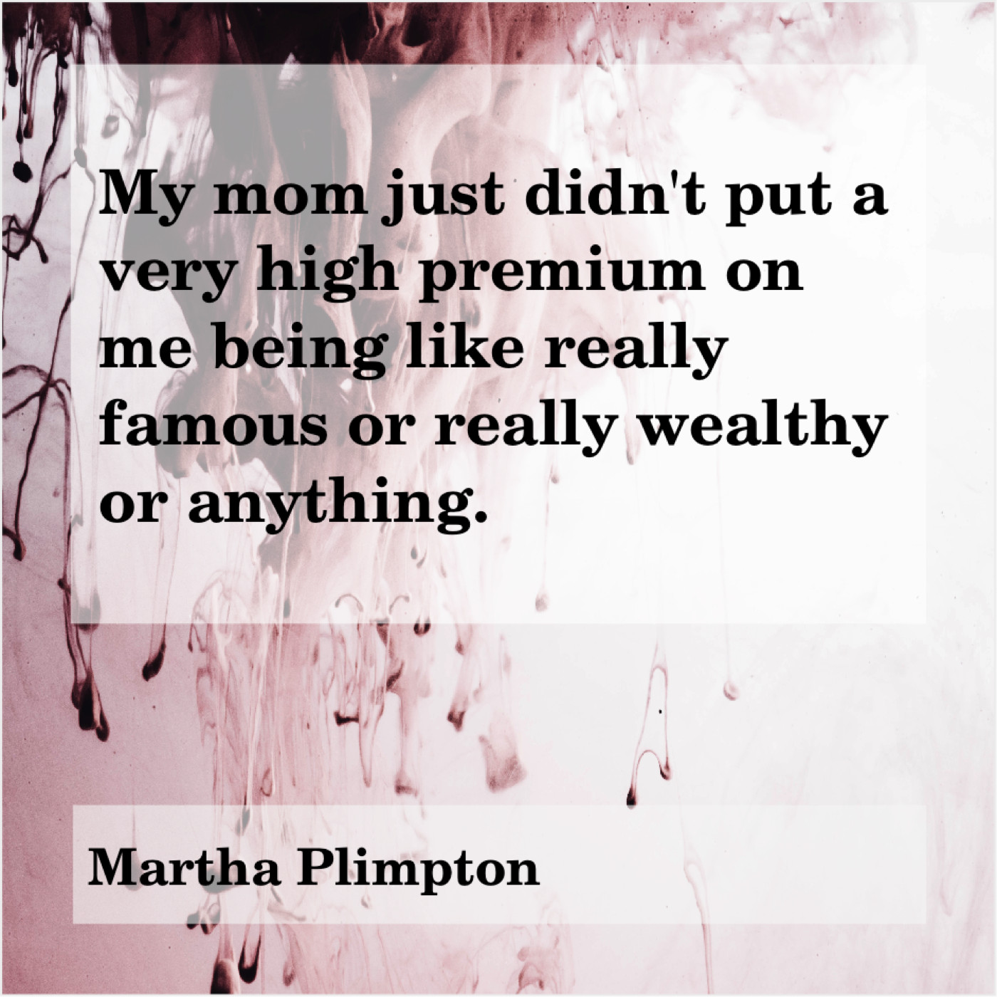 Martha Plimpton Martha Plimpton – My mom just didn’t put… October 20, 2019 admin “My mom just didn’t put a very high premium on me being like really famous or really wealthy or anything.”-Martha Plimpton