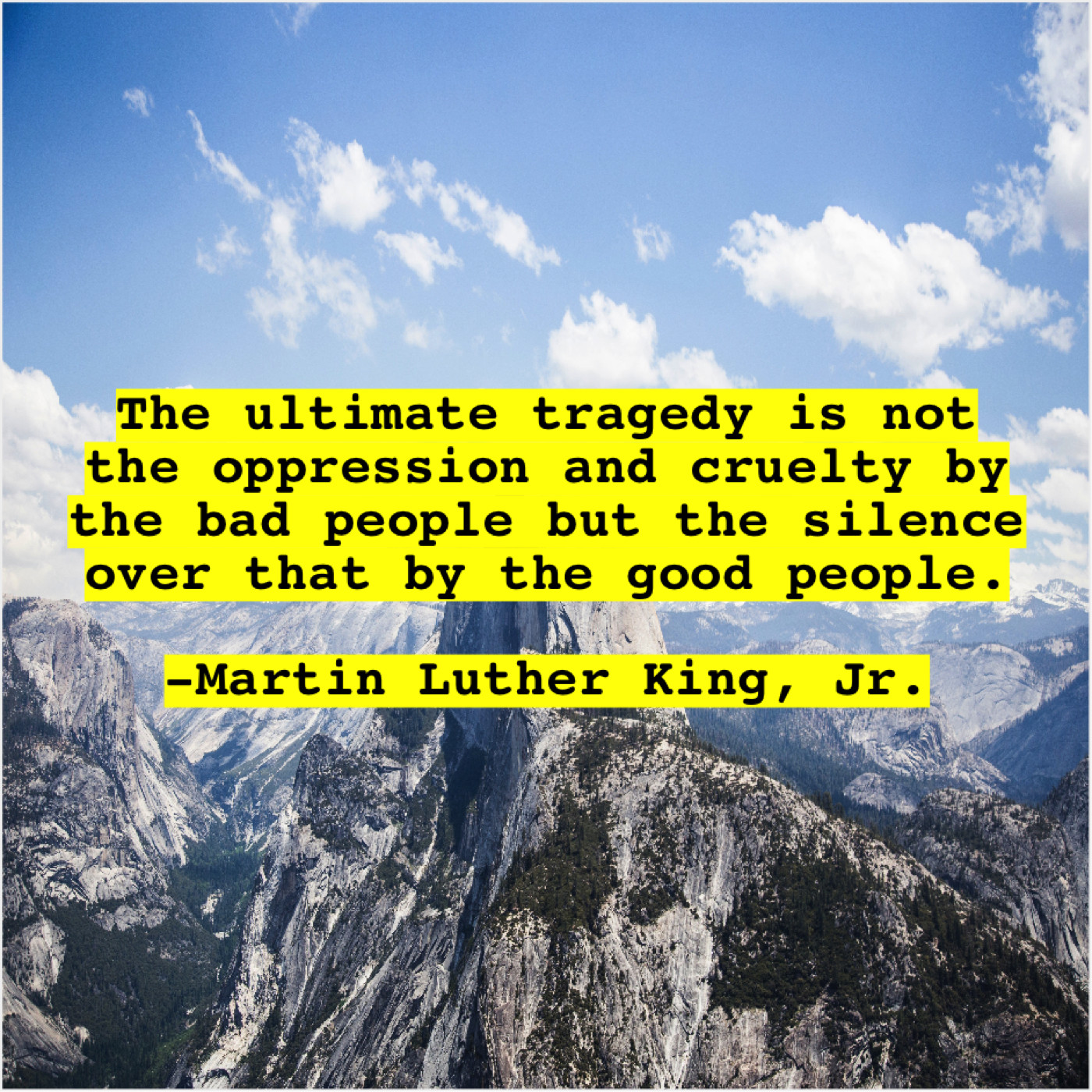 Martin Luther King, Jr. Martin Luther King, Jr. – The ultimate tragedy is not… May 22, 2019 admin “The ultimate tragedy is not the oppression and cruelty by the bad people but the silence over that by the good people.”-Martin Luther King, Jr.